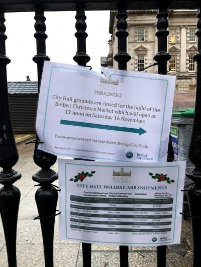毎年クリスマスシーズンには玄関ホールに巨大なクリスマスツリーが飾られます。市庁舎内のクリスマスマーケットは25日前には終わってしまいます。26日以降~年内は1~2日、年明け後は2日から中へ入れます。もし正面入口が閉鎖されていても裏口から入ることが出来ます(要・守衛さんに確認)