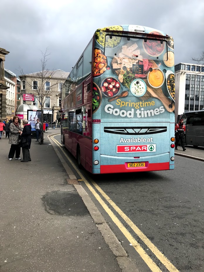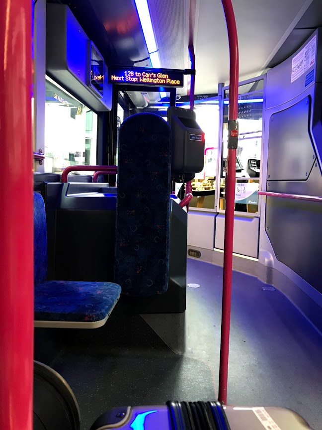 ベルファストを走っているのは、一般用は主に市内を走るMetro(ピンク)とGlider(紫)郊外に行くUlsterbus(青・白)、市内観光用のHip On Hop Off(赤)、ベルファストとダブリン空港を結ぶ高速バスのGoldline(青・白・金)があります。チケットは乗車の際にドライバーから直接購入も出来ますが、オンラインで購入した方が手数料分(1ポンド)割引されます。