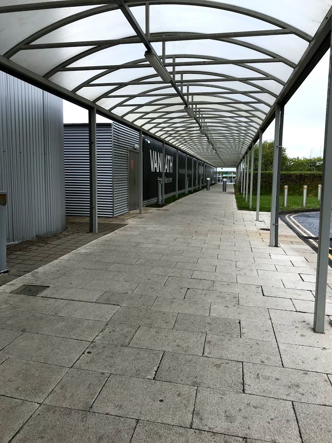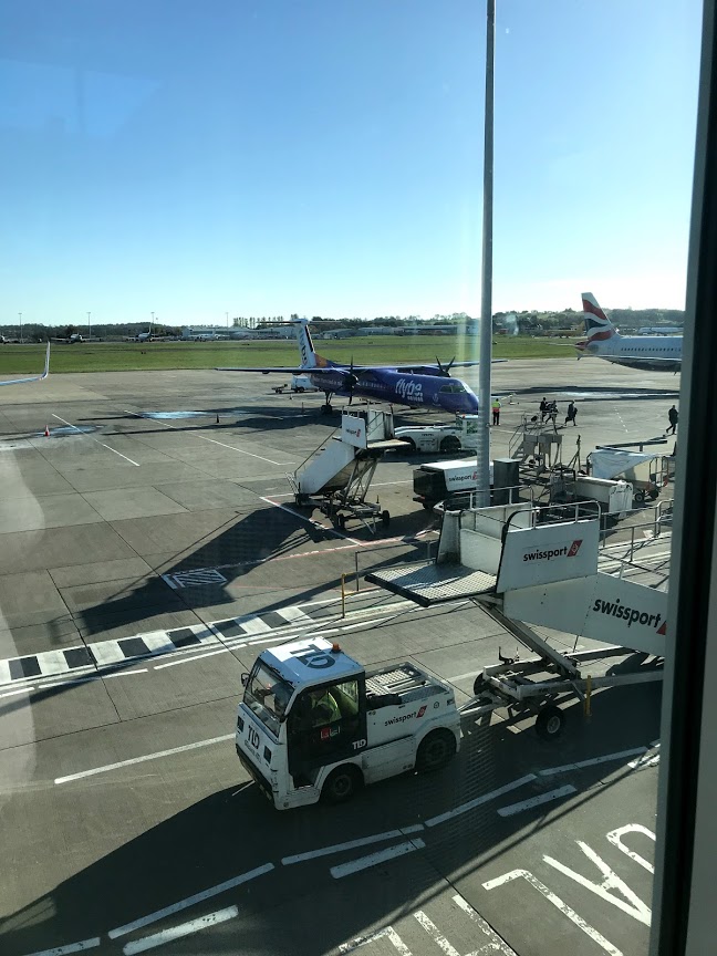 BAやFly beを使うと市街地に近いこちらの空港を利用することになります。空港自体はこじんまりしていてもうひとつの国際空港より使い勝手は良いと思います。空港まではバスターミナルから大人片道2.60ポンド(往復4ポンド)で子どもは半額で、30分に1本の間隔で走っています。最寄りの駅までバスはないので歩こうと思えば歩けない距離ではないけど、大人の足で20分以上はかかります。