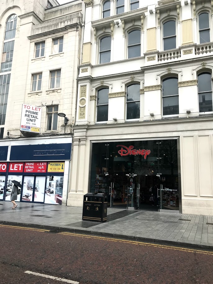 市庁舎前の大通りを真っすぐ行った先にあります。お店の規模としてはあまり大きくありませんし、ご当地(イギリス又はアイルランド)限定のぬいぐるみやグッズ等の販売もしていません。でも、日本では未発売のキャラクターグッズのコーナーが期間限定であったりするのでお好きな方は覗いてみると欲しいものが見つかるかもしれません。