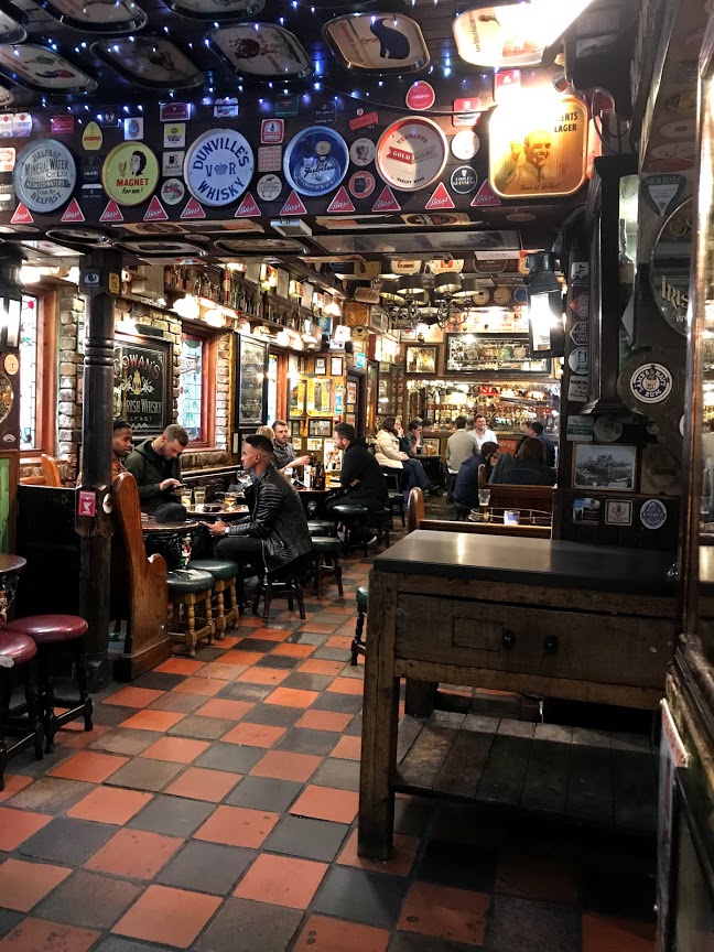 Premier InnやMerchant Hotelから近く、Donegall StreetとHill Streetの間にあります。夜(特に週末)は大混雑で座れることは少ないですが、それ以外の時間帯であれば比較的空いていてゆっくり飲むことができます。内装は、古いアンティークな造りでギネスや他のビール・ウィスキーのグッズやポスターなどが、壁から天井まで所狭しと飾ってあります。なので、ここのパブは飲めない人でも居るだけで内装や人物観察をするだけでも楽しめます。天気が良ければ外にあるベンチで飲むこともできます。運が良ければ地元の有名人に会えるかもしれません。(2018.4)