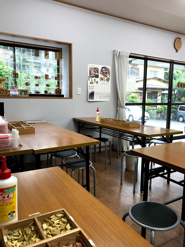 寄木で好みの形や柄のコースターが作れます。1人40ピースまででグループ内でピースをシェアすることも可能です(40以上になった場合は1ピース¥20別途かかります)お店の前の道も駐車場も狭いので運転に不慣れな方は注意です。お店の方出演の説明ビデオを観ることから始まって作り終えるまで約1h近くかかりました。サンプルとして色んな形のコースターを見ながら作れるので思ってたほど難しくはなかったです。