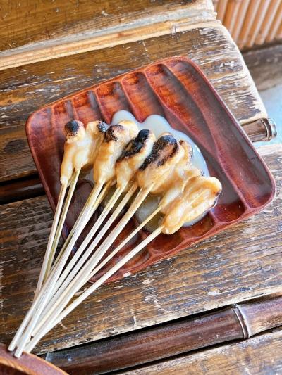ドラマ・鬼平犯科帳のエンディングに映っている約1000年続くお茶屋さんです。今の女将で25代目なんだそう。竹串の先に小さく刺さっているお餅を炙って甘い白味噌のタレをかけて出来上がる「あぶり餅」は1人前10本ですが、もっと食べれる感じがします。
