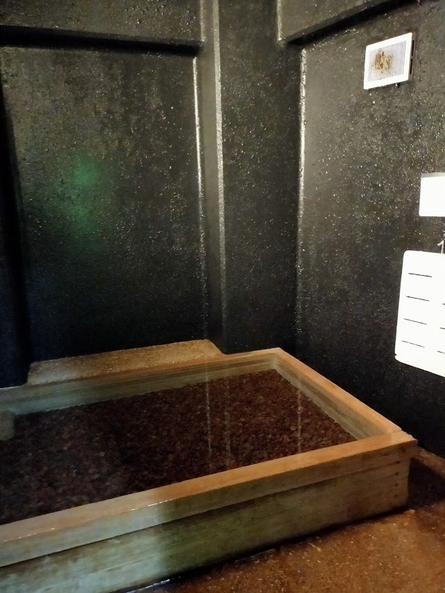 3つの貸切風呂の使用状況は1階のランプで確認できて、中でも防空壕に通過した先にある五右衛門風呂は面白かったです。
