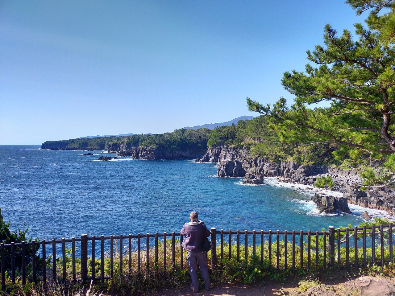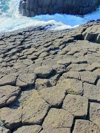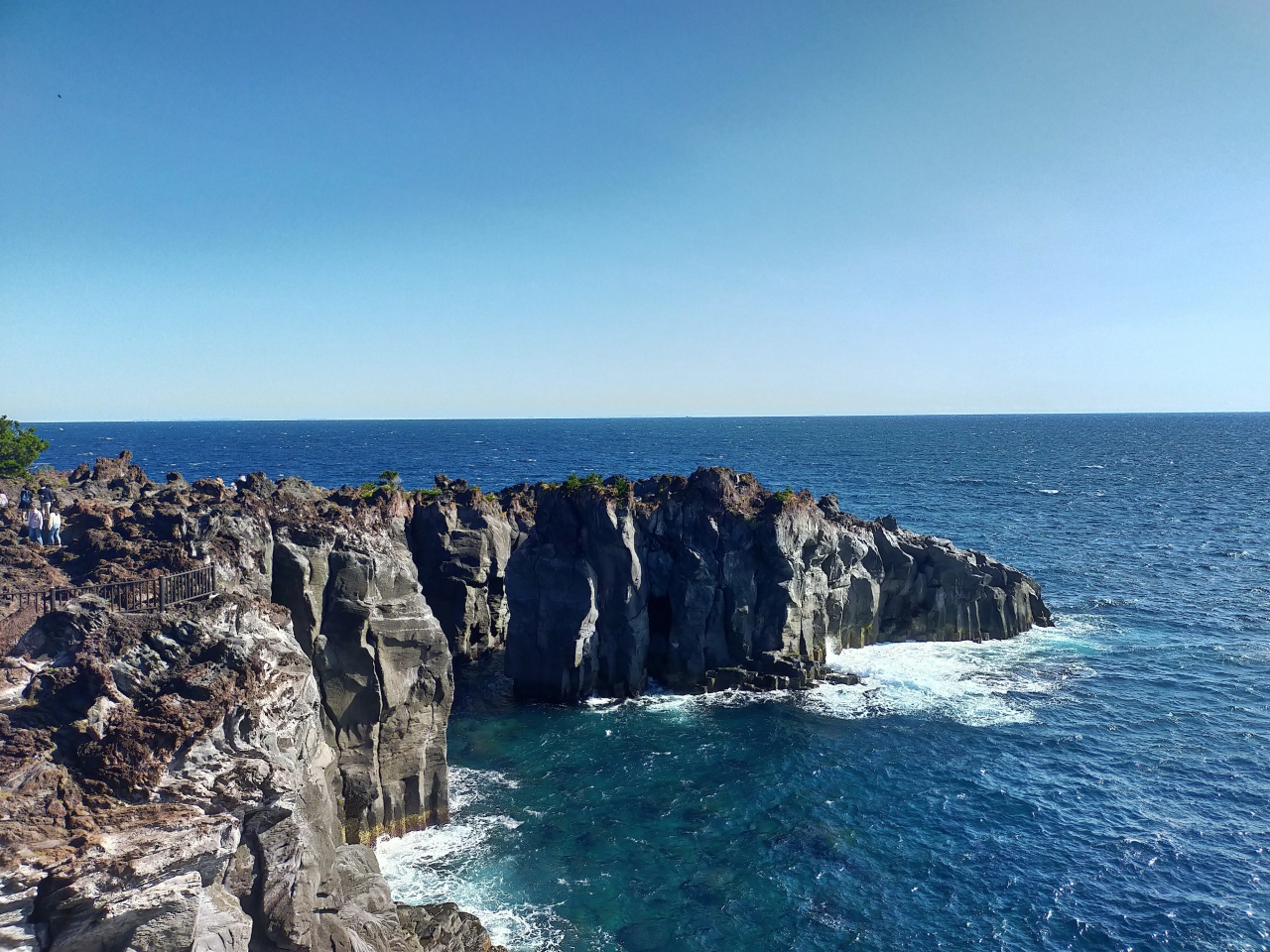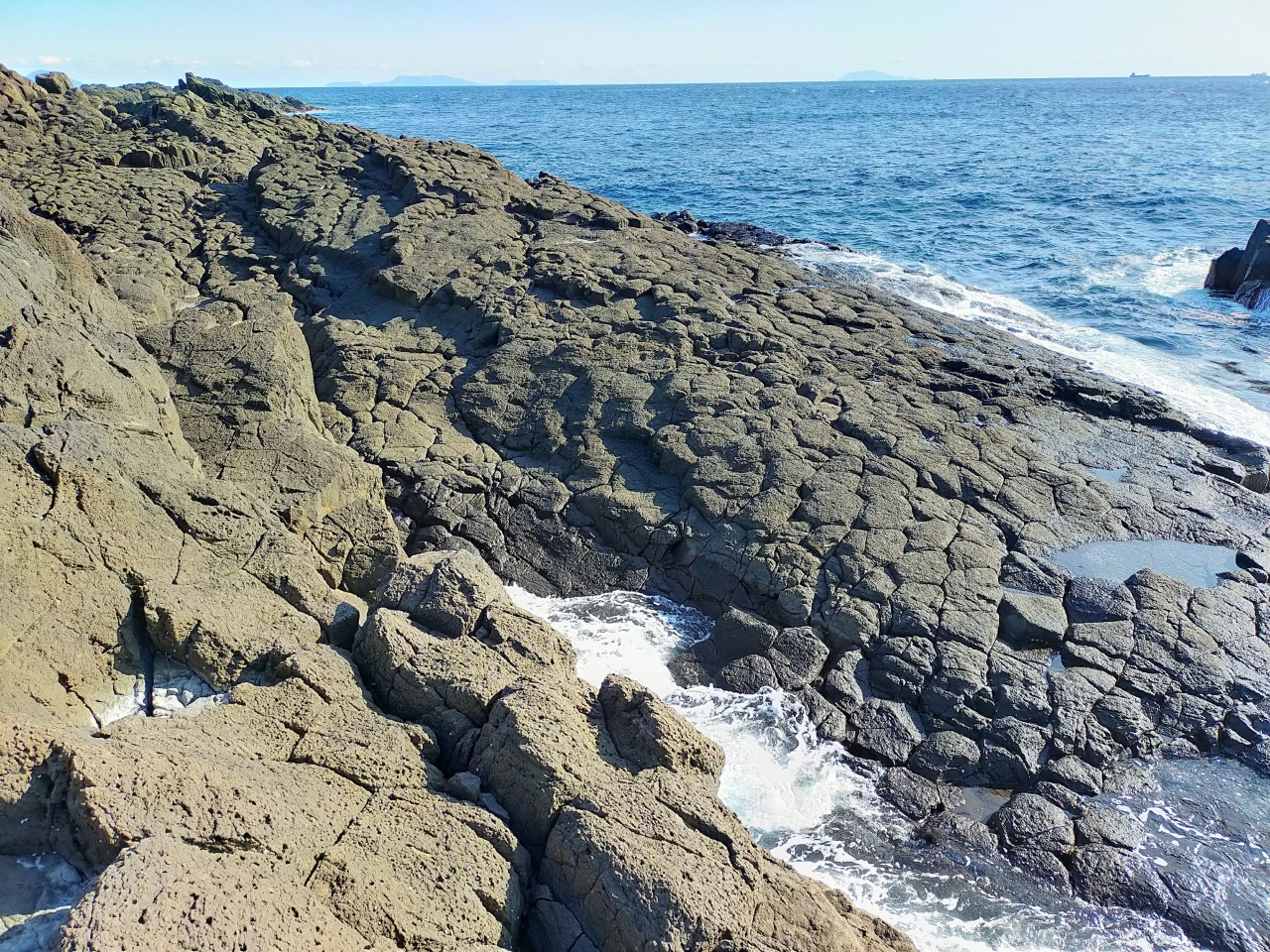 城ケ崎海岸の門脇吊り橋や灯台のすぐ近くにあります。約4000年前に起こった大室山の大噴火により溶岩が流出し、波の浸食作用が生み出した溶岩岩石海岸なんだそう。崖の上から雄大な海を見たり、間近に溶岩を見ることが出来て面白いです。