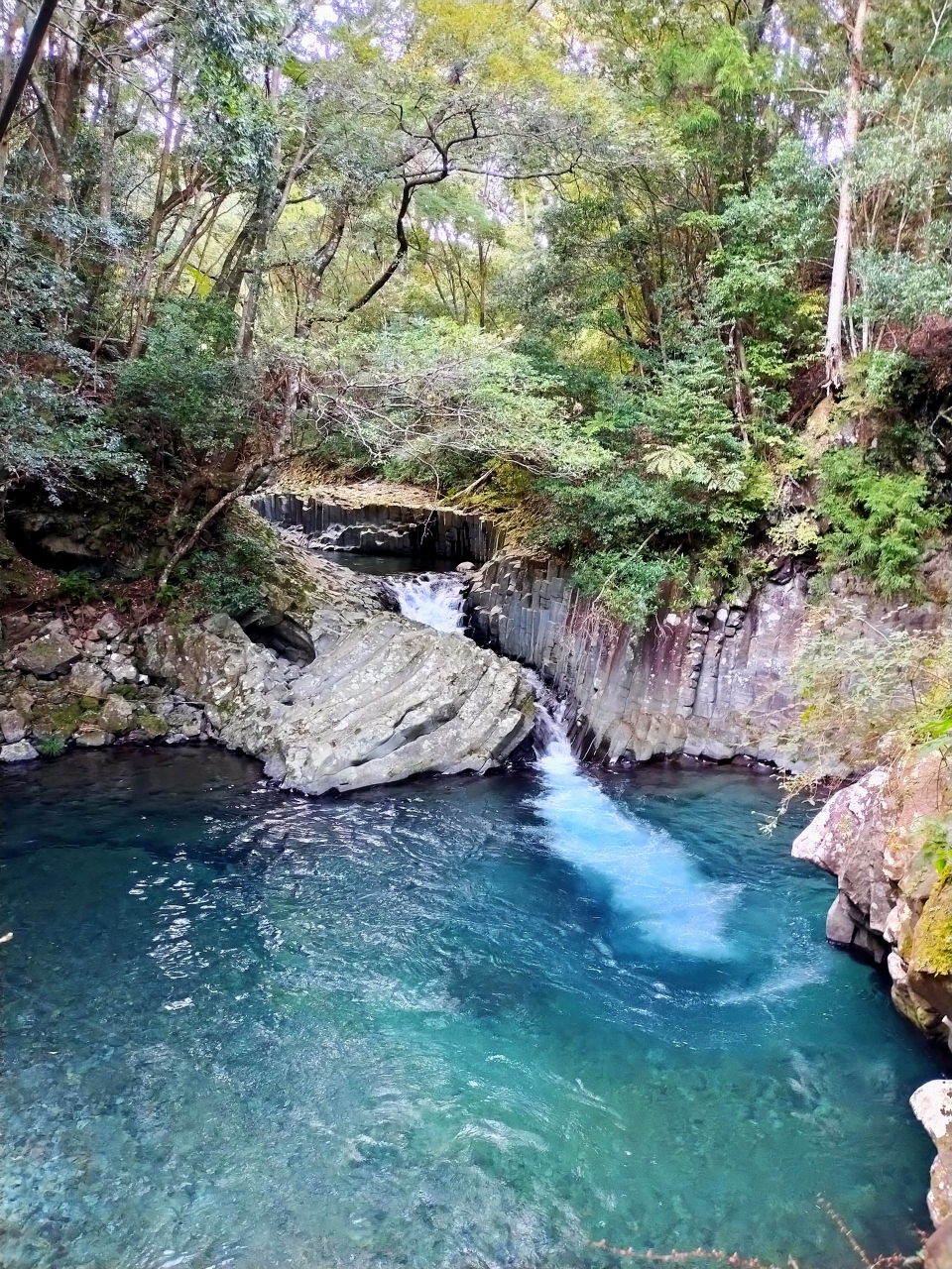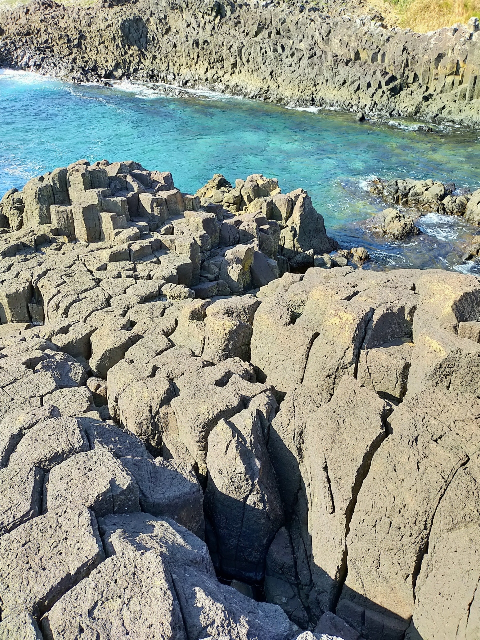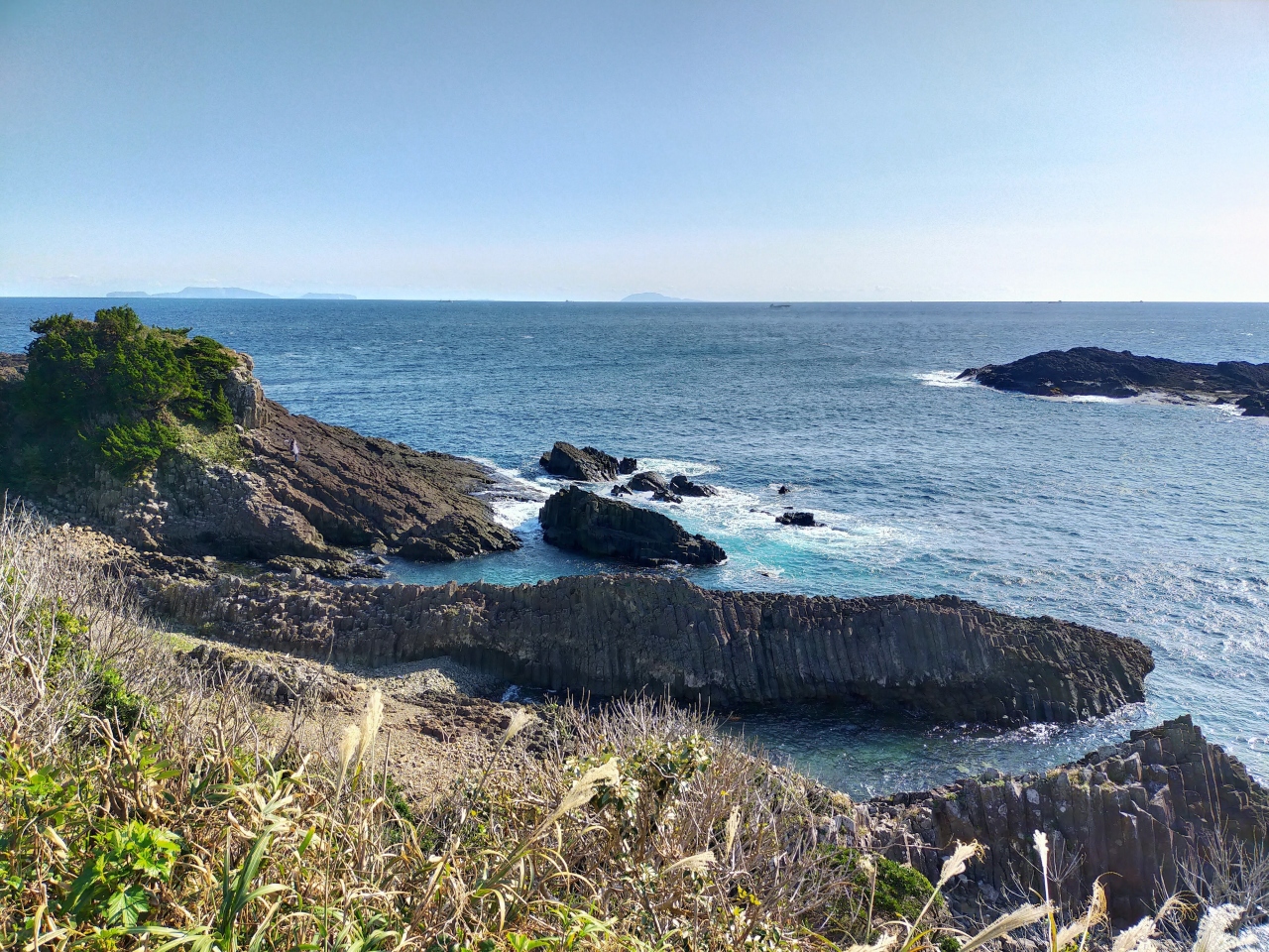 城ケ崎海岸の門脇吊り橋や灯台のすぐ近くにあります。約4000年前に起こった大室山の大噴火により溶岩が流出し、波の浸食作用が生み出した溶岩岩石海岸なんだそう。崖の上から雄大な海を見たり、間近に溶岩を見ることが出来て面白いです。