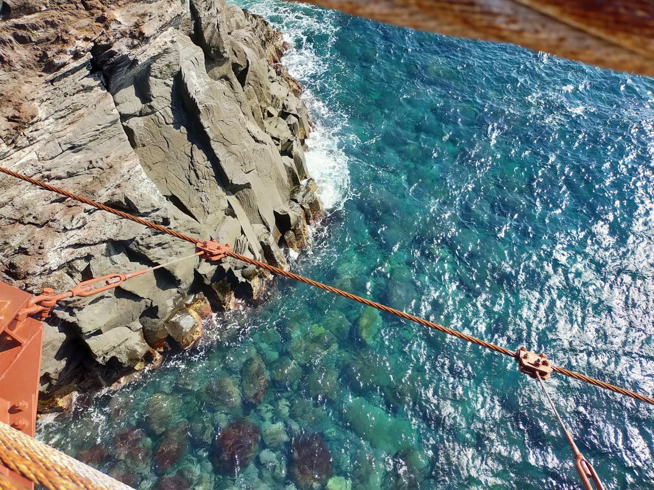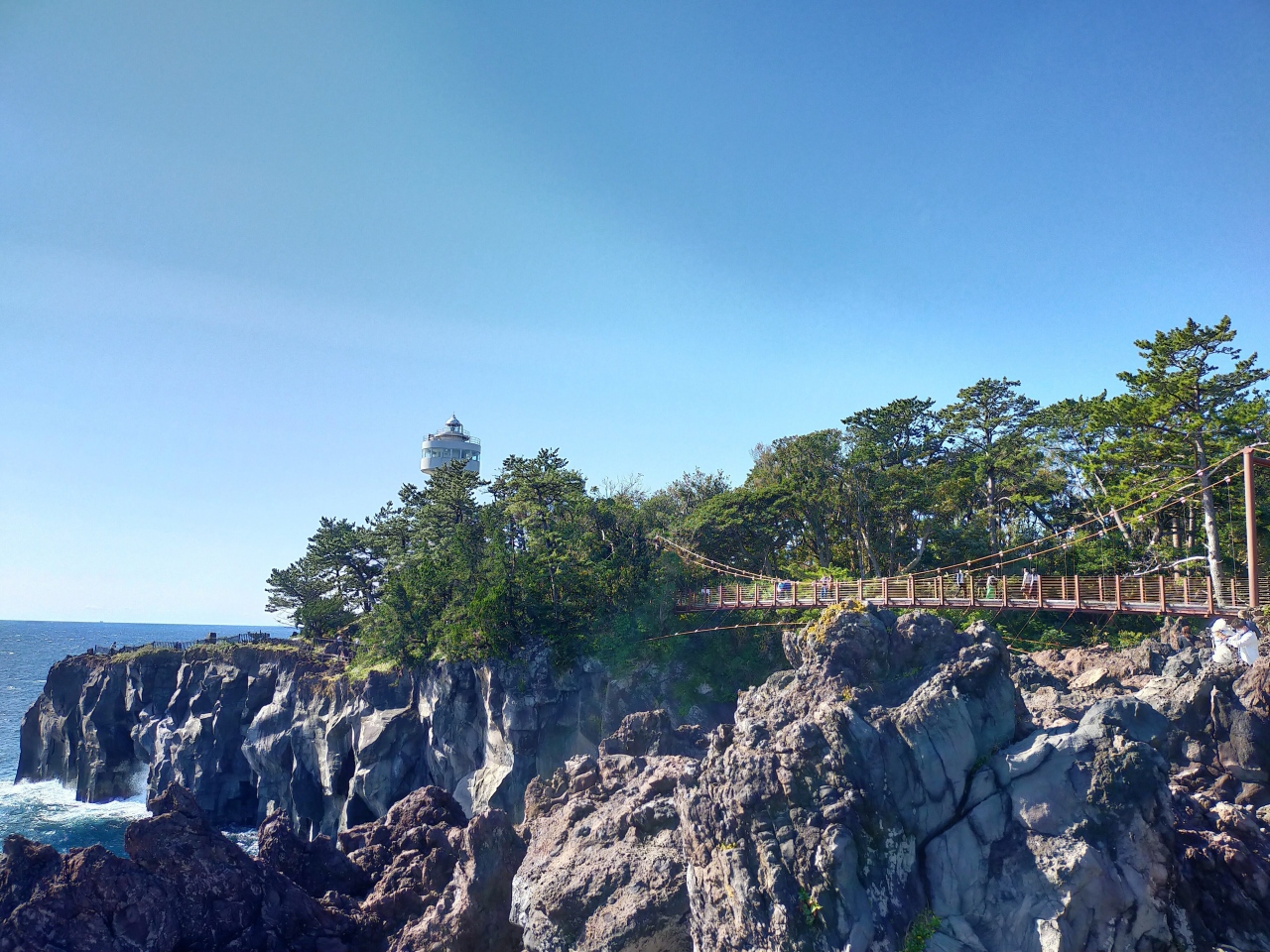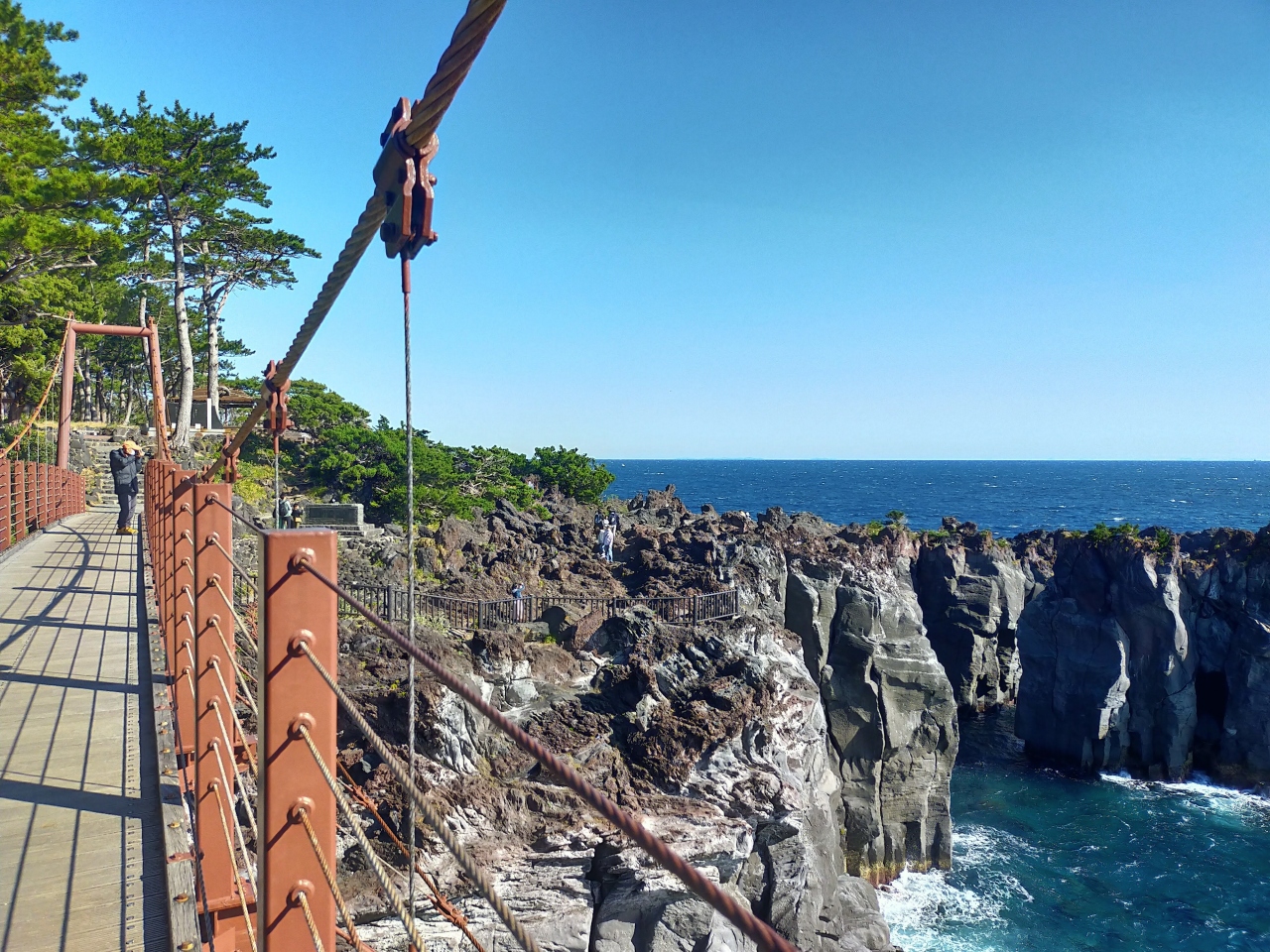 断崖絶壁が続いている城ケ崎海岸にある吊り橋です。吊り橋といってもグラグラ風にあおられると揺れるような造りではなく案外しっかりしています。橋の上からも渡った先にある崖の上からも絶景が見られます。- 旅行時期