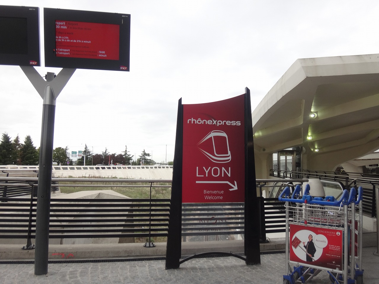 パリの玄関といえばパリのCDG。巨大すぎて、人も多く、荷物受け取りまで出るのに大変。それに対してここリヨン国際空港は、離発着便も少なく、とてもシンプル。空港からリヨン市街まで直通のトラムが走っていて。30分ほど。時間も正確。