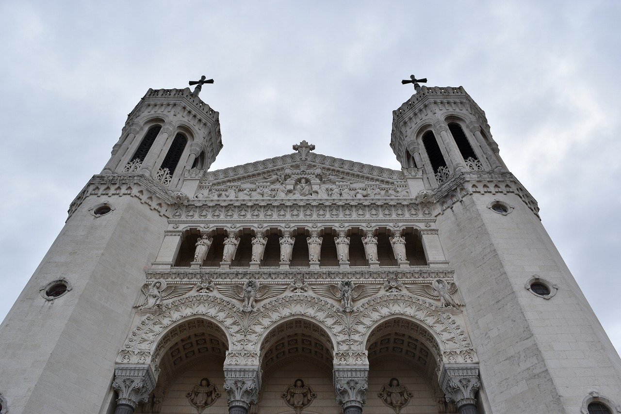 麓の登山電車駅からケーブルカーで3分。駅を出たら目の前にすくっと教会。19世紀末に完成した比較的新しい教会。ここには、教会裏からリヨン市内を眺めようとやってきたので、教会自体はあまり期待していなかったのですが、中に入るとステンドグラスが素晴らしい。