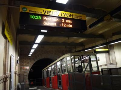 麓のソーヌ河のほとりから、一気にフルヴィエールの丘に登るケーブルカー。