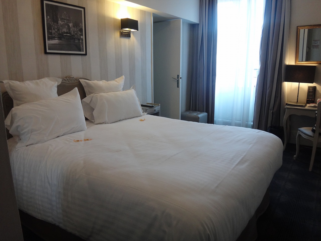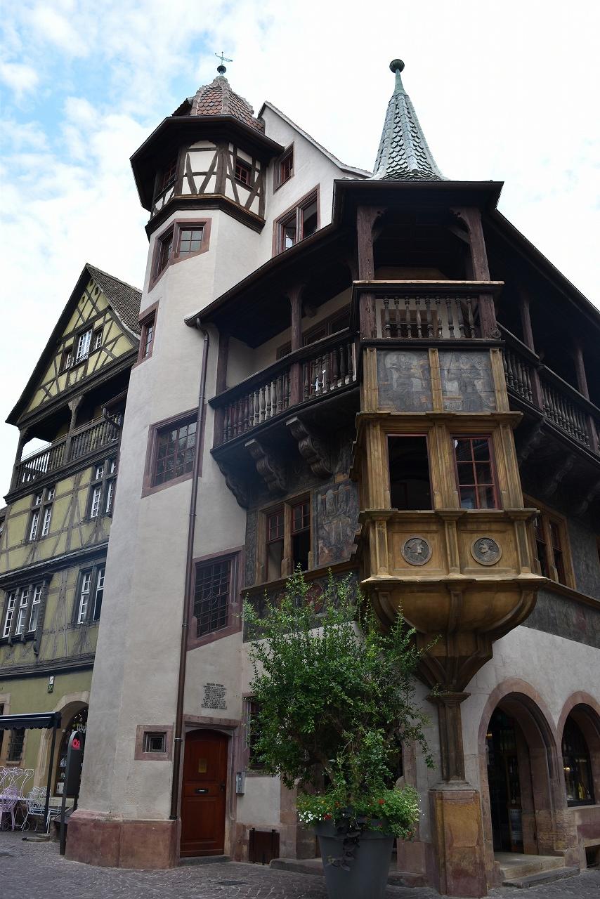 コルマールの観光名所「頭の家」は、オーベルジュ(宿泊施設つきのレストラン)。ホテルは5つ星と聞いていたので、ちょっと緊張気味だったのだけれど、スタッフもお部屋の雰囲気も、フレンドリー、メルヘンぽくって、ペンションのような感じ。
