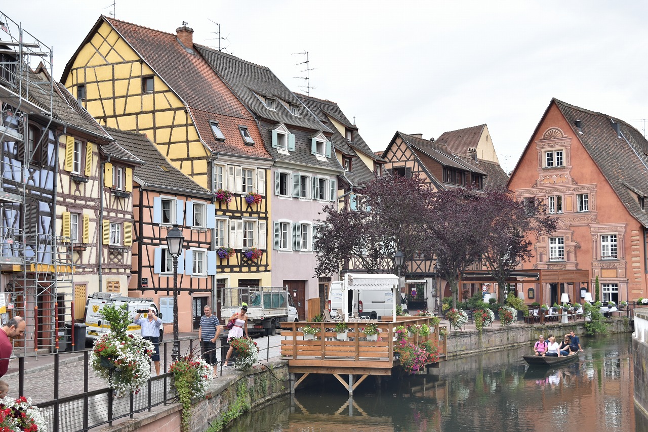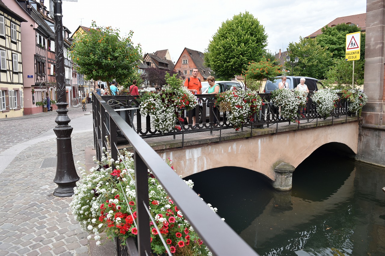 本当に小さな運河が。運河沿いの通りには花壇に飾られた色とりどり花が綺麗