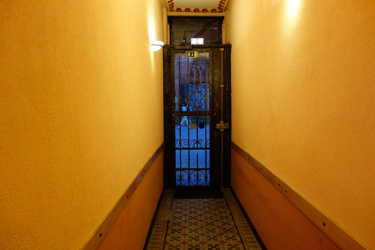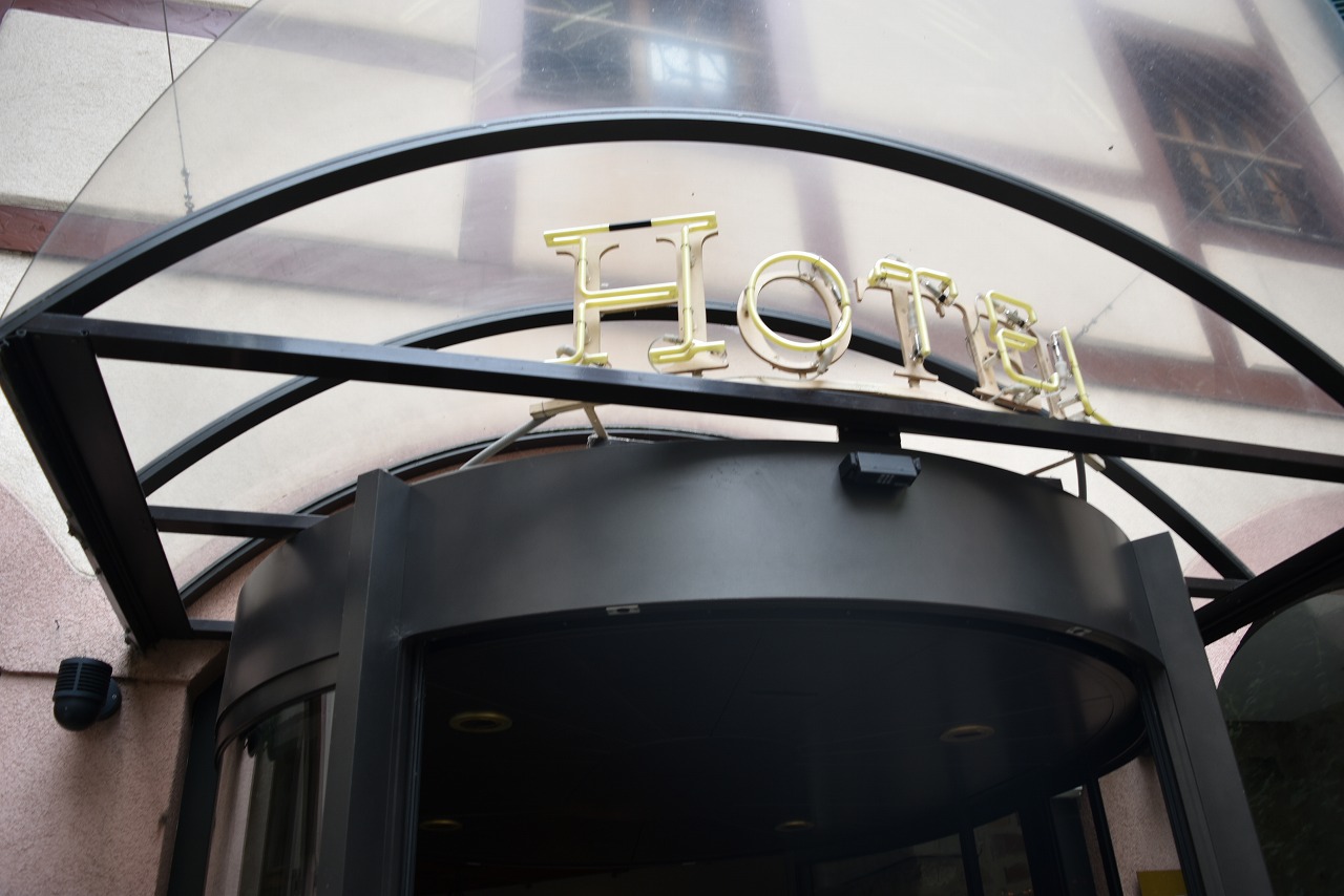 ホテルのフロントでチェックインした後、スタッフに連れられて建物の外へ。