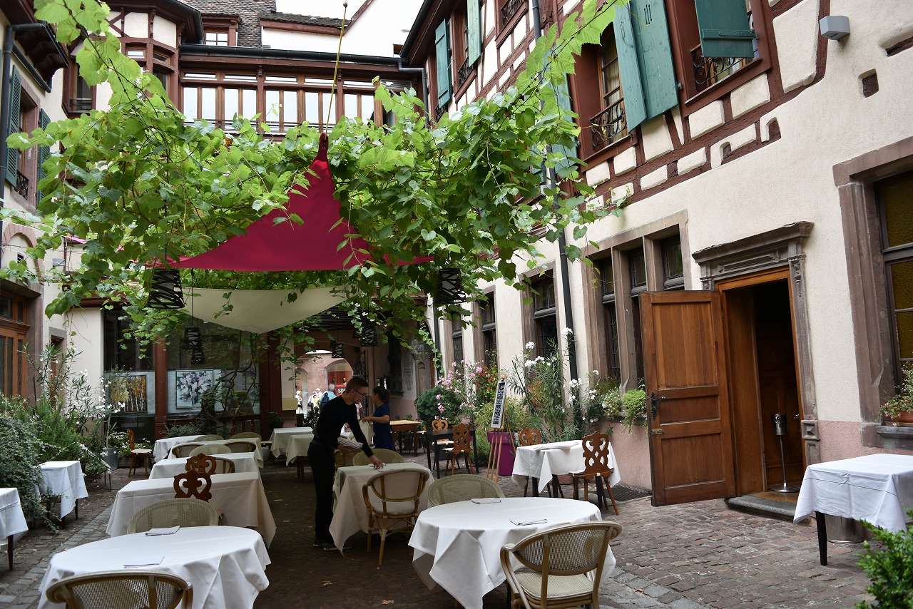 アルザス料理がいただけるオーベルジュ。歴史的建造物でなので建物は古いけどお部屋は快適