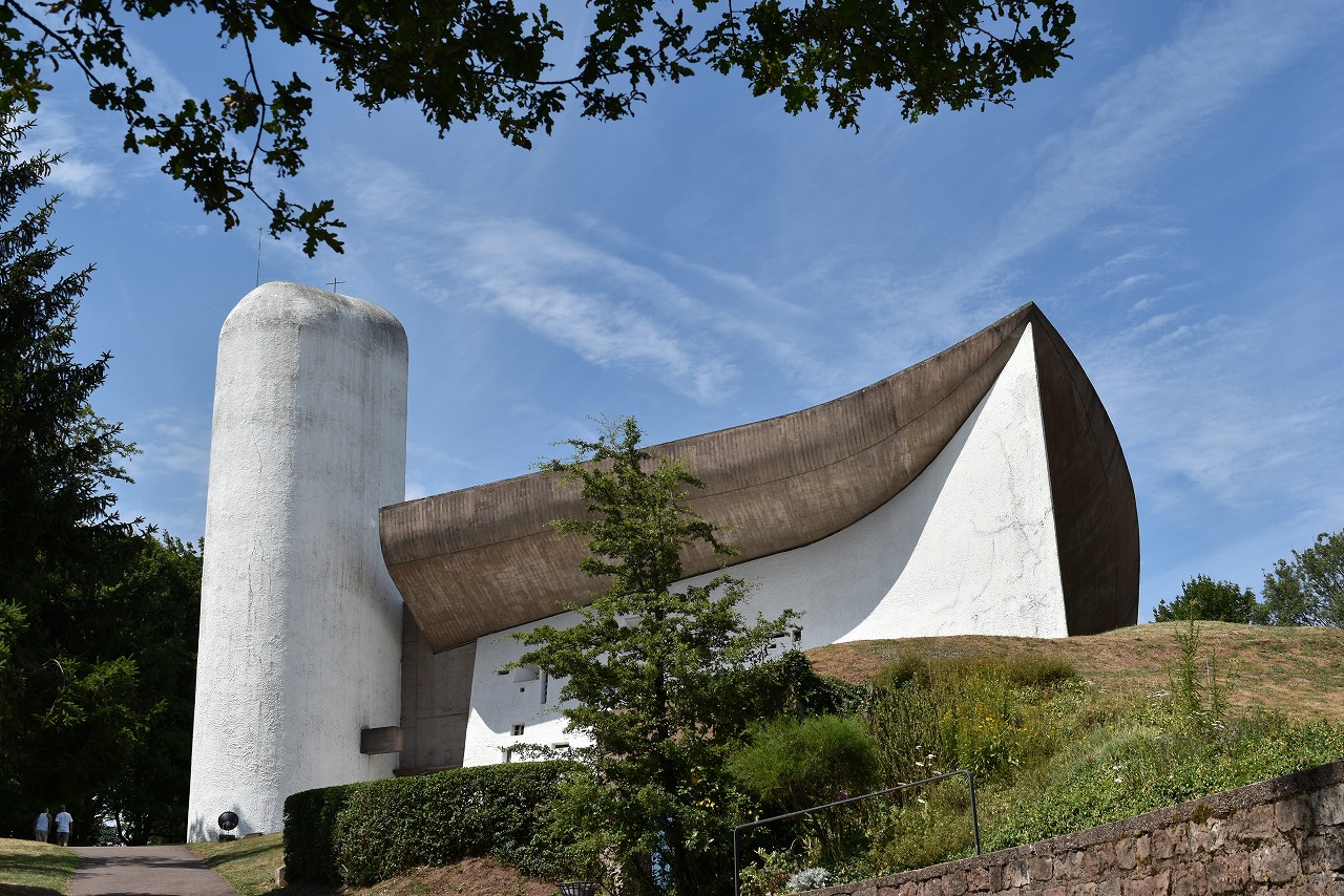 きのこのような前衛的な教会。曲線と自然光はコルビジェ・マジックかな