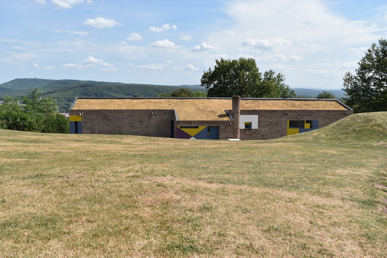 奇抜な外観は教会とはかけ離れたイメージなのだけれど、不思議と周囲の景観にとてもマッチしていて、梢のざわめきや草の匂いの中、自然に包まれて敬虔な気持ちになれる場所。チャペルの中は撮影禁止ですが、小さな窓から十分に計算して取り入れられた採光で、心の底から穏やかな気分になれます。