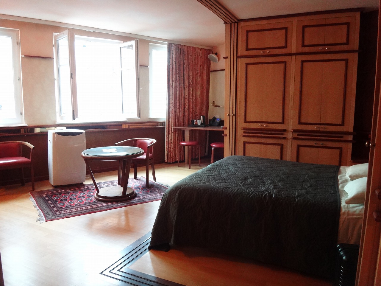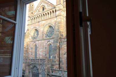 ワンルームマンションのような感じ。広い窓の外は、すぐカテドラル。