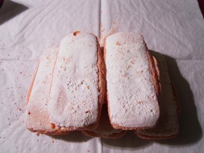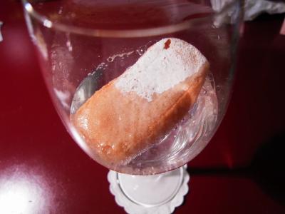 淡いピンクのビスケット。そに名もRose。シャンパンに浸しても良し