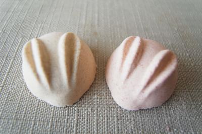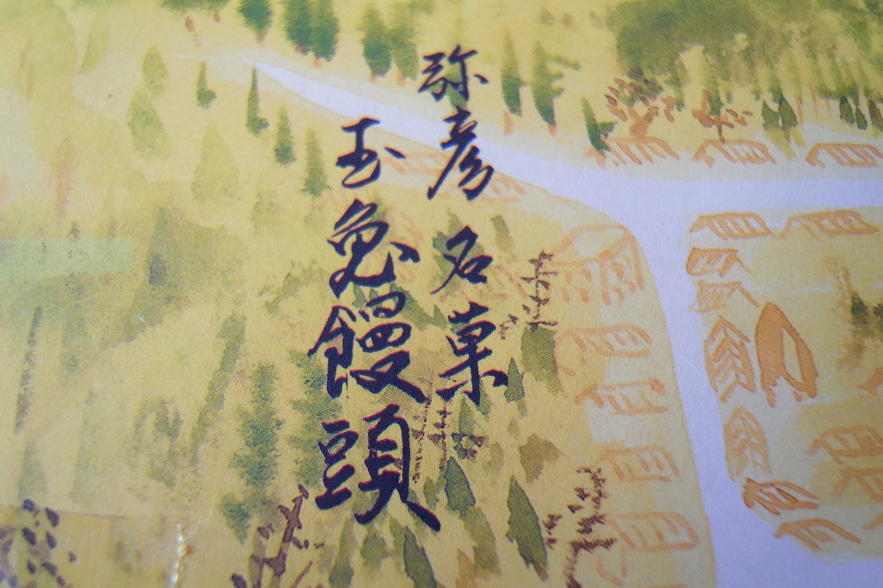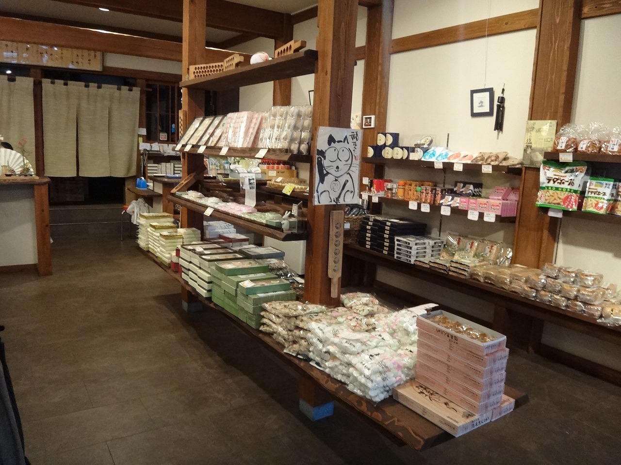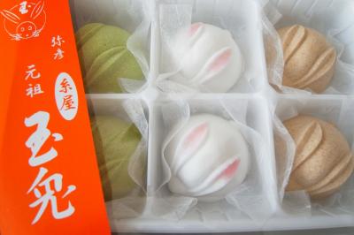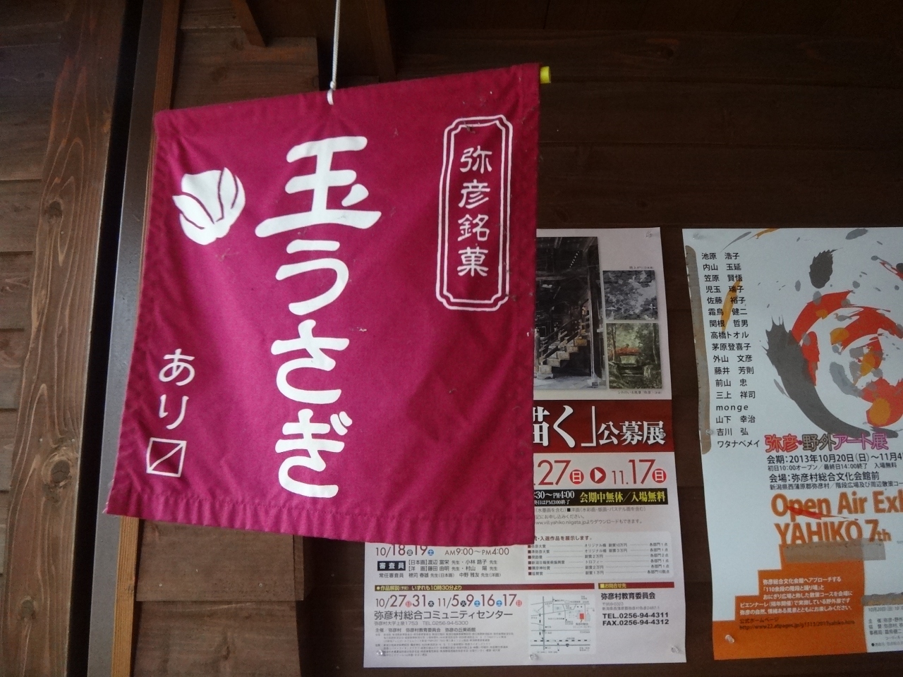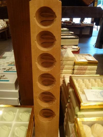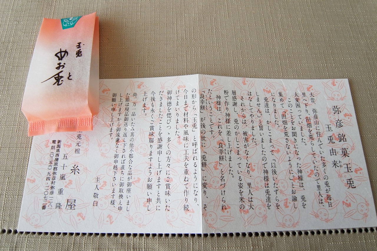 和菓子屋さんなのだけれど、和風の小物なども扱う、ギャラリーっぽいお土産屋さんになっていて店内をゆっくり見てまわるのも、とても楽しい。お干菓子を作る「型」も飾られています。弥彦神社でうさぎのエピソードを知ると、一層、愛着が持てるお菓子。