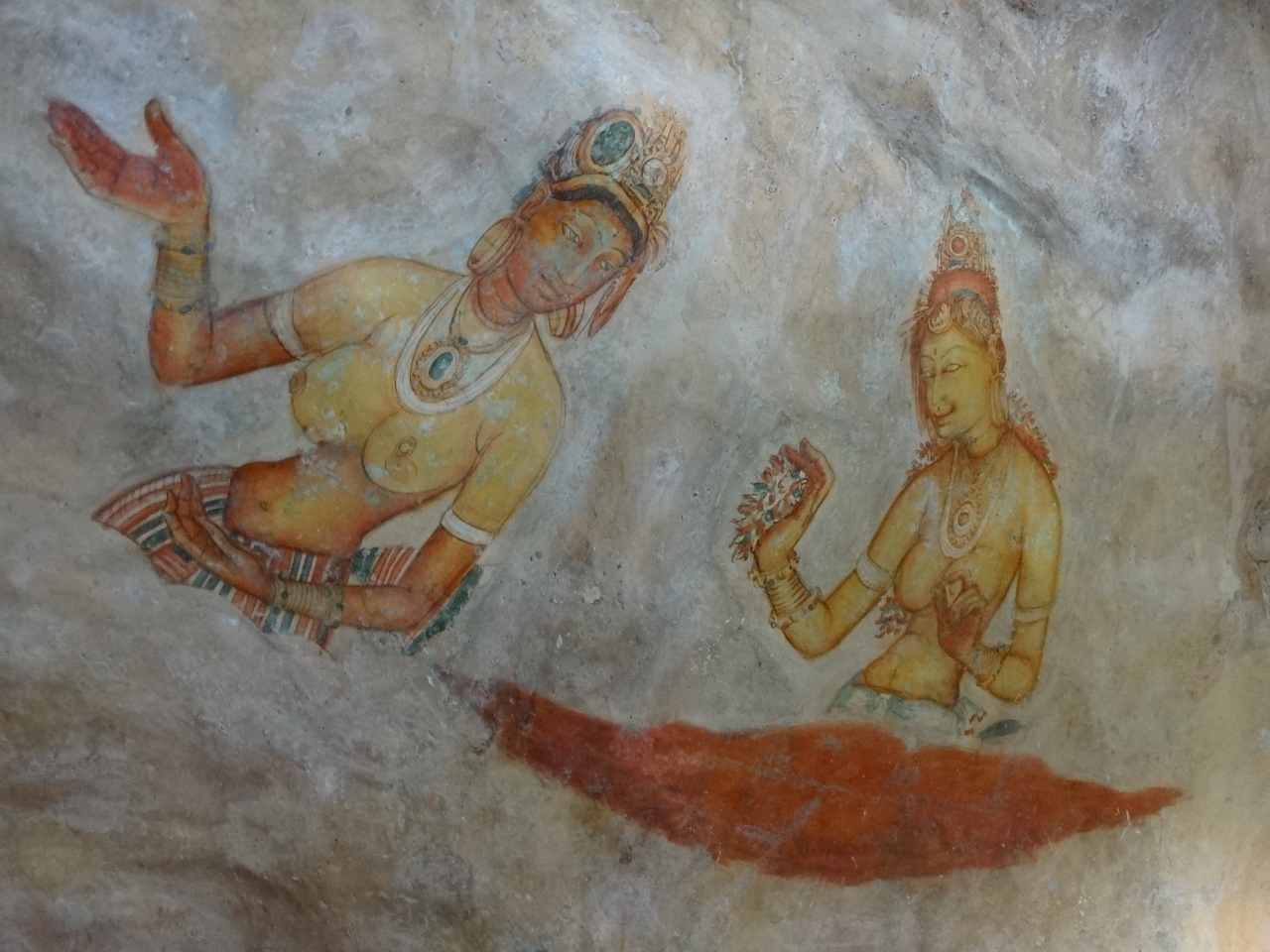 スリランカの乾季、1月に世界遺産シギリヤ・ロックを訪れた。密林の中にすくっとそそりたつ大岩。その岩の頂上の平になった部分に、かつて都があった。岩の中腹、あらゆる場所に彩色豊かになフレスコ画の美人が描かれていたそうです。今は18体を残すのみ。