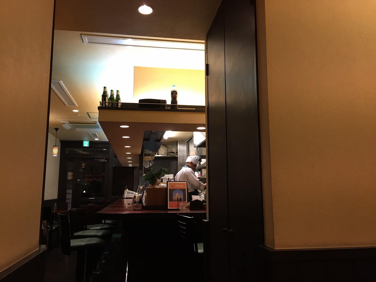 店は、カウンターと2人用のテーブルが3卓、奥に4人用テーブル。