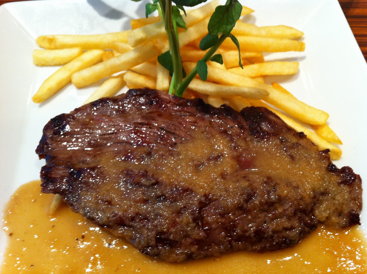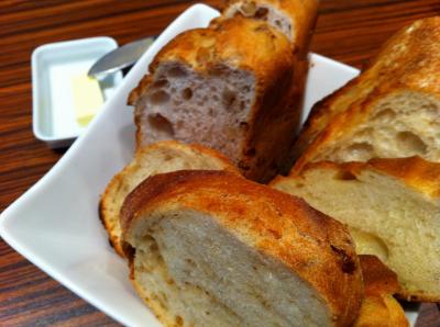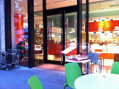 メトロ大手町駅の上、永代通り沿いのビルの一角にある店。オフィス側のエントランスは、ちょっと敷居が高そうだけれど、仲町通り沿いは、ガラス張り、テラスになっていて、パンのテイクアウトカウンターもあり、カジュアルな感じ。ランチはたいてい8~9割が女性だけど、みんなステーキや、食べ放題のパン、デザートをがっつりいただいています。