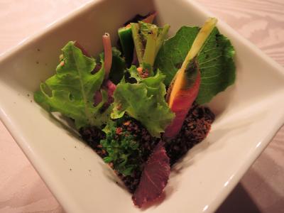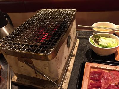 定番の焼肉は、七輪に炭を入れてテーブルに持ってきてくれ、自分で焼きながらいただきます。各テーブルに喚起があるので煙が髪の毛や衣類に残る心配もなし。焼肉以外にもビーフシチューや、ハンバーグやメンチカツなど定食もあり。山形牛、ワインがずらりと並ぶ店。