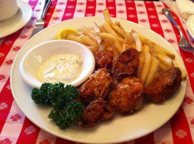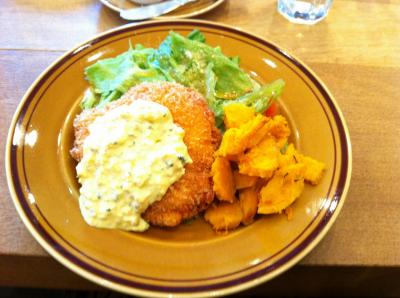 秋葉原でショッピングに疲れたら、淀橋カメラのレストランフロアへ。この店もゆったりしていて、ゆっくり休めます。メニューも選びやすくて気取りがありません。大人のお子様ランチのノリで、ハンバーグやフライの定食を。