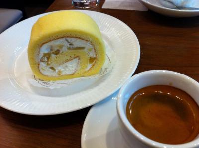 場所がら、知る人ぞ知る、と感じ。JR新橋駅の第一京浜側のガード下の、本当に裏ぶれた雰囲気の並びにある。明治38年創業、汐留に洋食屋「小川軒」として誕生し、お持ち帰りのお土産で「レイズン・ウィッチ」という焼き菓子を始めてつくったのだそうです。今日はコーヒーとロールケーキをいただきました。