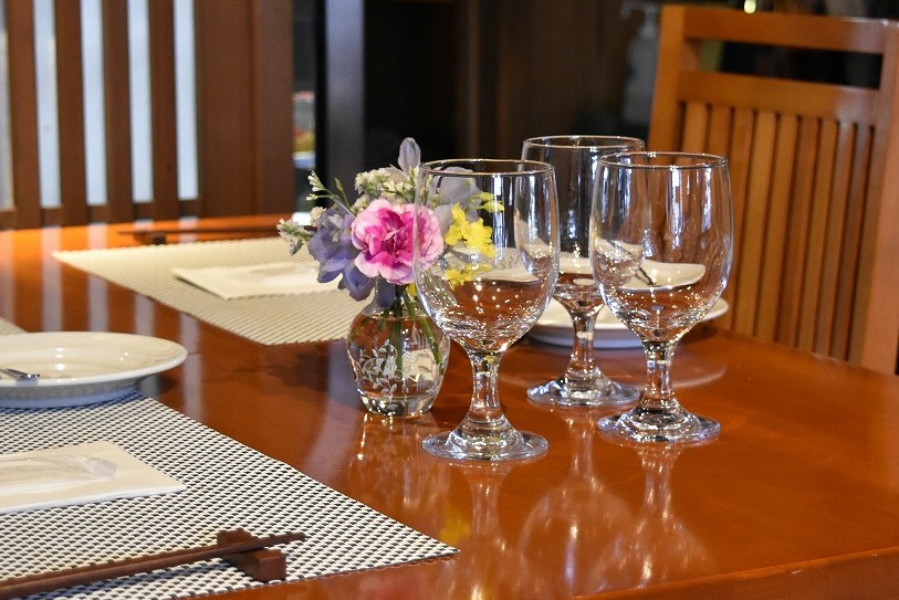 ホテルの1階、ロビーの横のダイニング。カジュアルだけどしっかりディナー