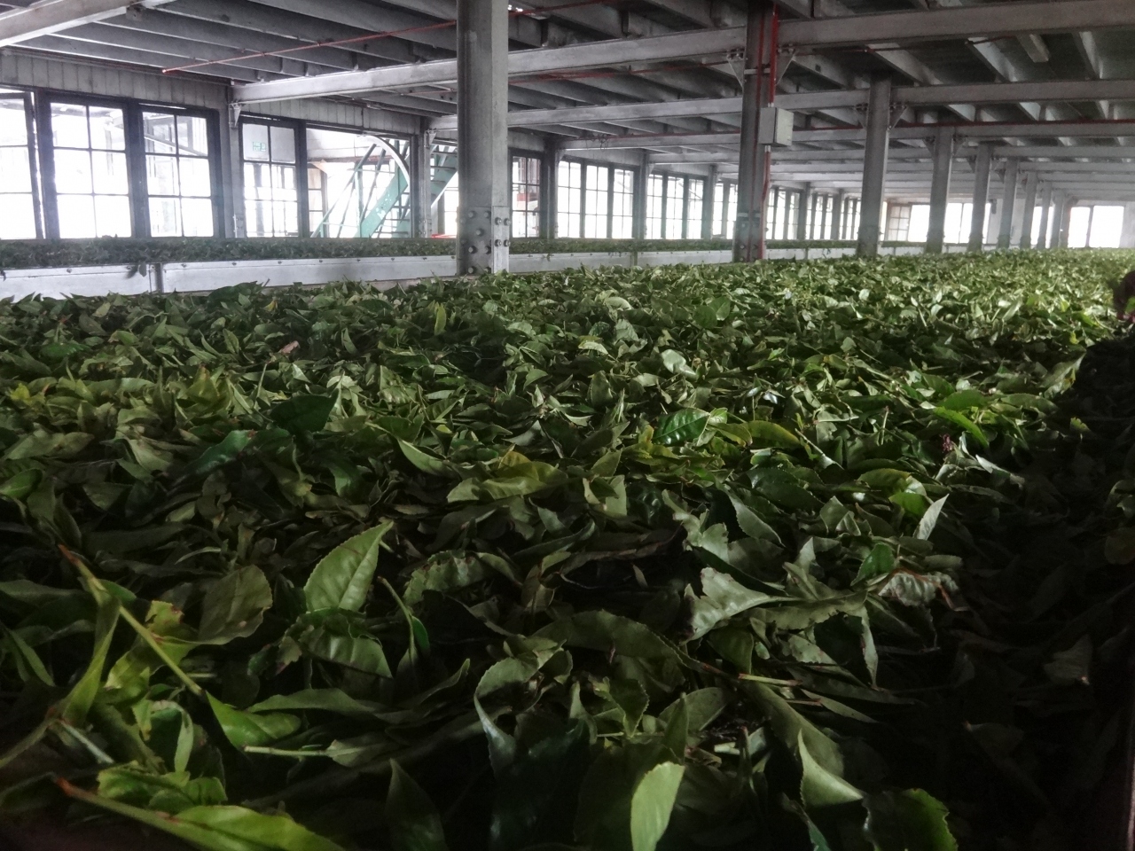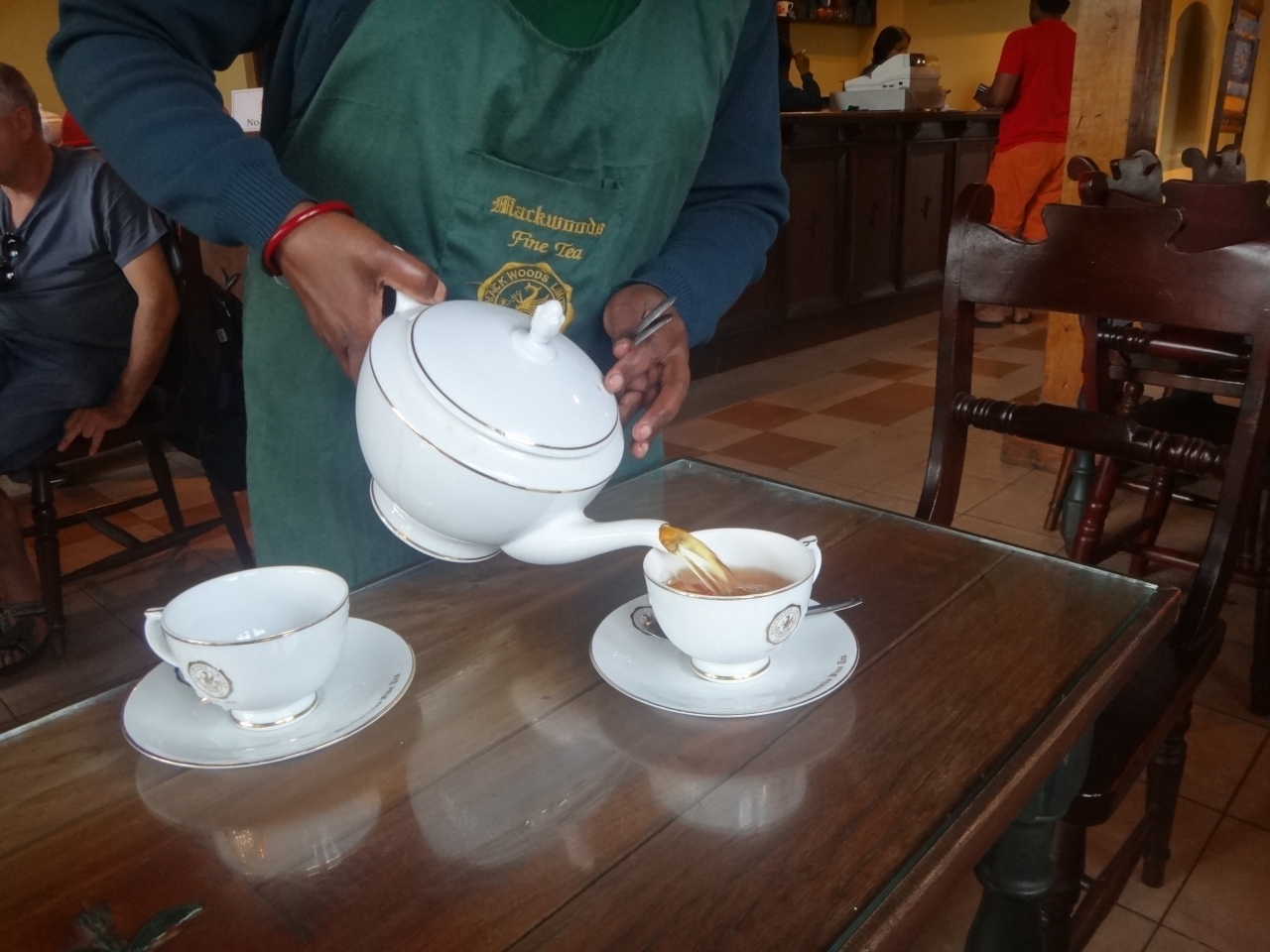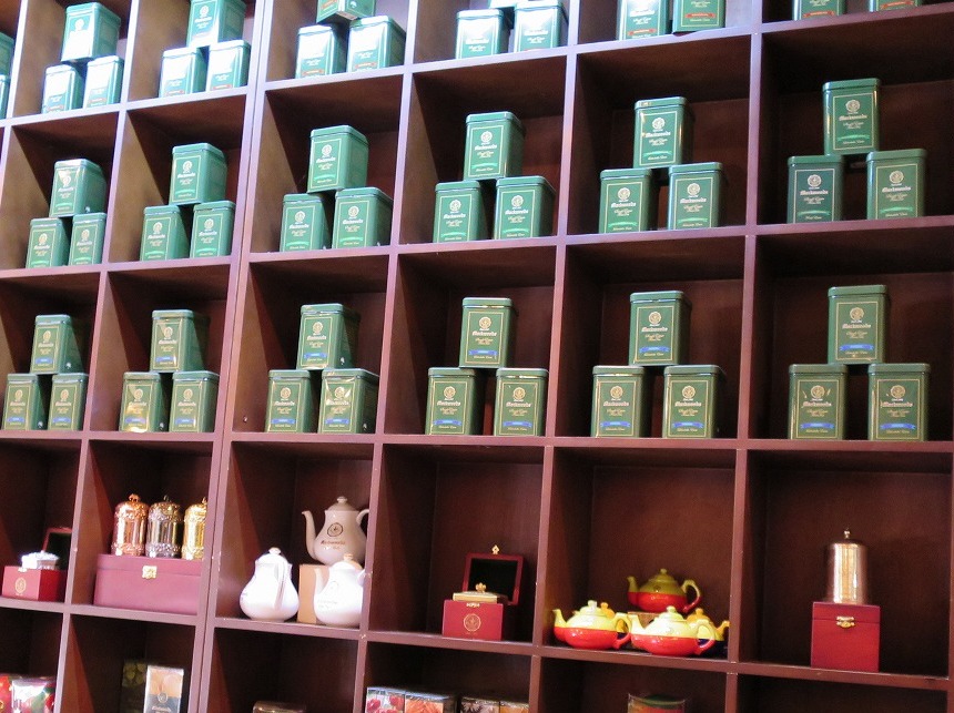 辺り一面に茶畑が広がる景色が続く。マックウッズは1841年創業の英国の会社。紅茶の生産工程を見学した後は、ティーハウスで、チョコレートケーキとストレートティをいただく。