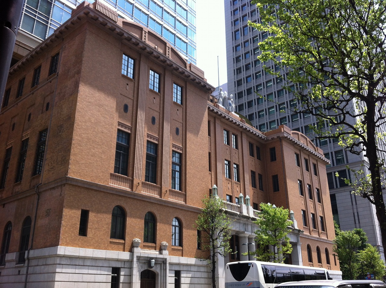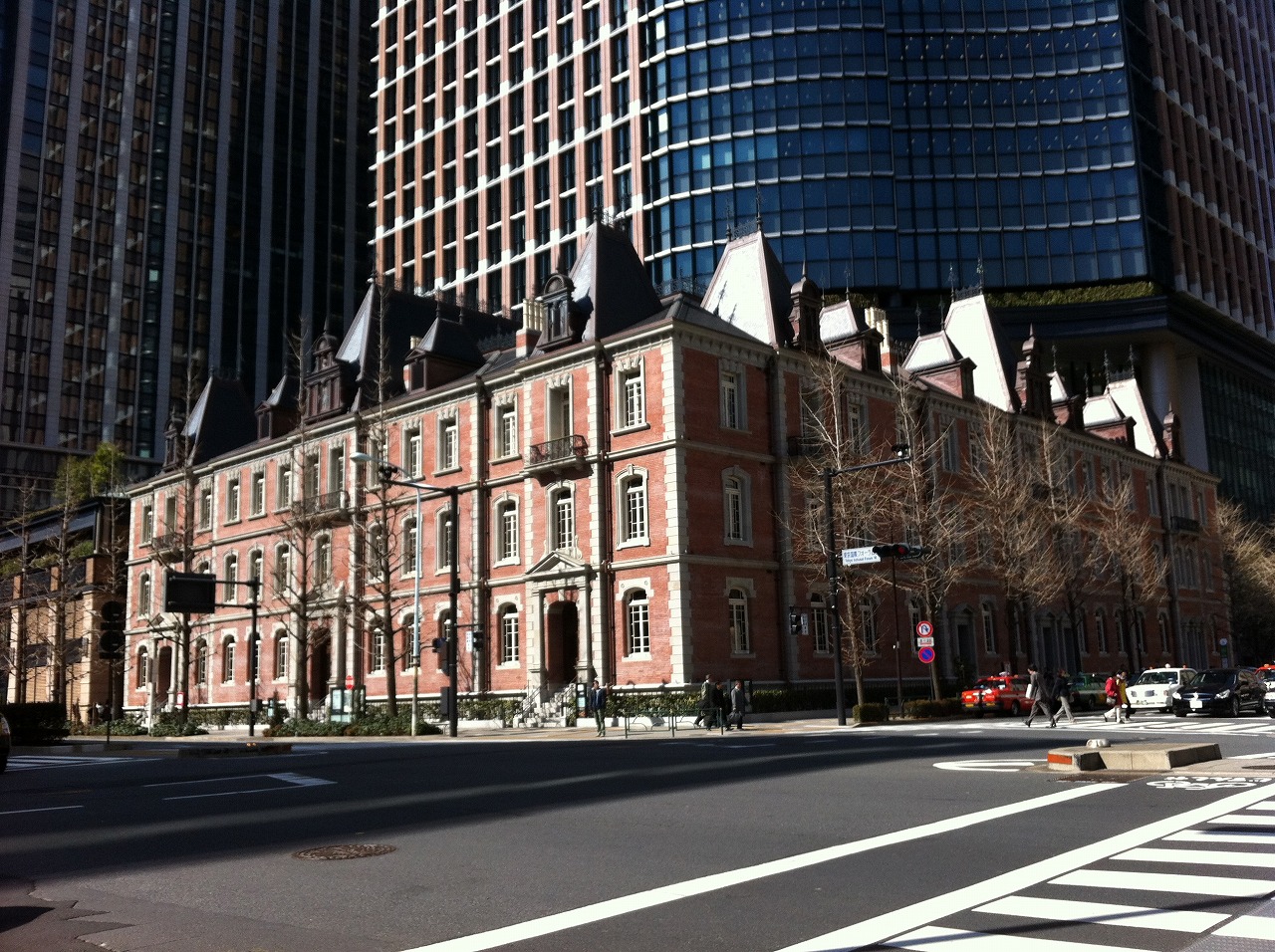 東京の中心、丸の内、大手町界隈は、最近ビルの建て替えが進み、50階を越える高層建築がめじろ押しだけれど、明治時代の近代建築を残すために、低層階や、正面は、昔の建築を残すデザインが多い。