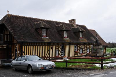 牧草地が広がるノルマンディ地方。途中に「フランスで最も美しい村」のひとつ、ブブロン・オン・ノージュがある。
