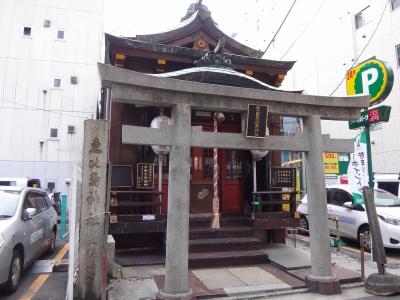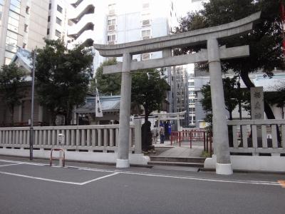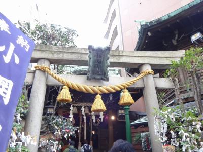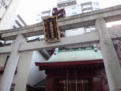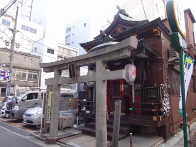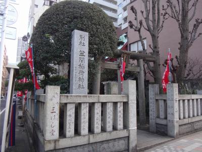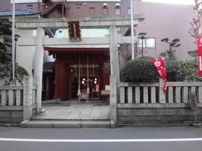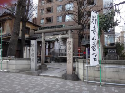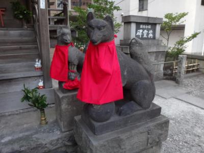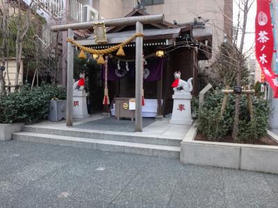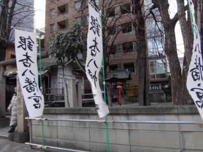 日本橋七福神巡りの途中、小網神社から茶の木神社へ移動中に、真っ赤な鳥居、シュールなキツネに誘われて迷いこんでしまった。 銀杏八幡宮の名前の通り、境内には銀杏の木がたくさん。のぼりは一杯たっているのだけれど、神社の由来を書いた看板や札はありませんでした。