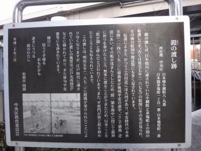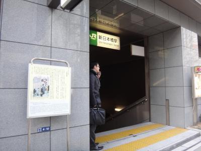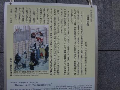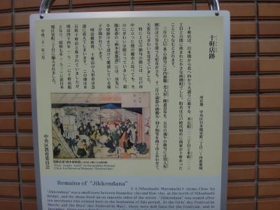 日本橋室町3丁目付近。日本橋三越から中央通りを神田方面へ進む。日本橋三井タワー(マンダリンホテルの建物)を越えたあたりに、この案内版が掲示されている。