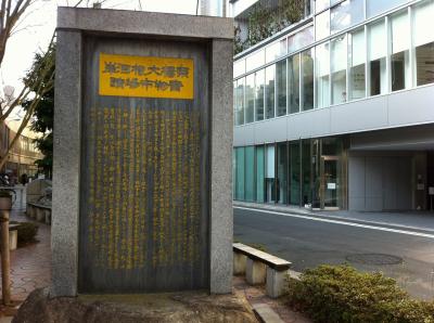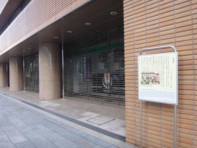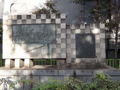 町名が銀座から京橋にかわる辺り、高速道路の高架の下に、タバコを吸う人が集う場所がある。よーく見ると、記念碑が二つ。