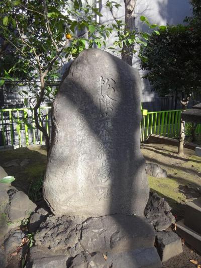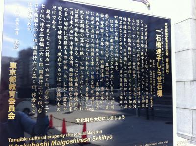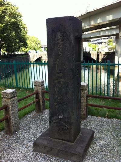 銀座を中央通り沿いに京橋方面へぶらぶら散歩していると、ちょうど高速道路の高架をくぐった辺りに、この石碑があります。