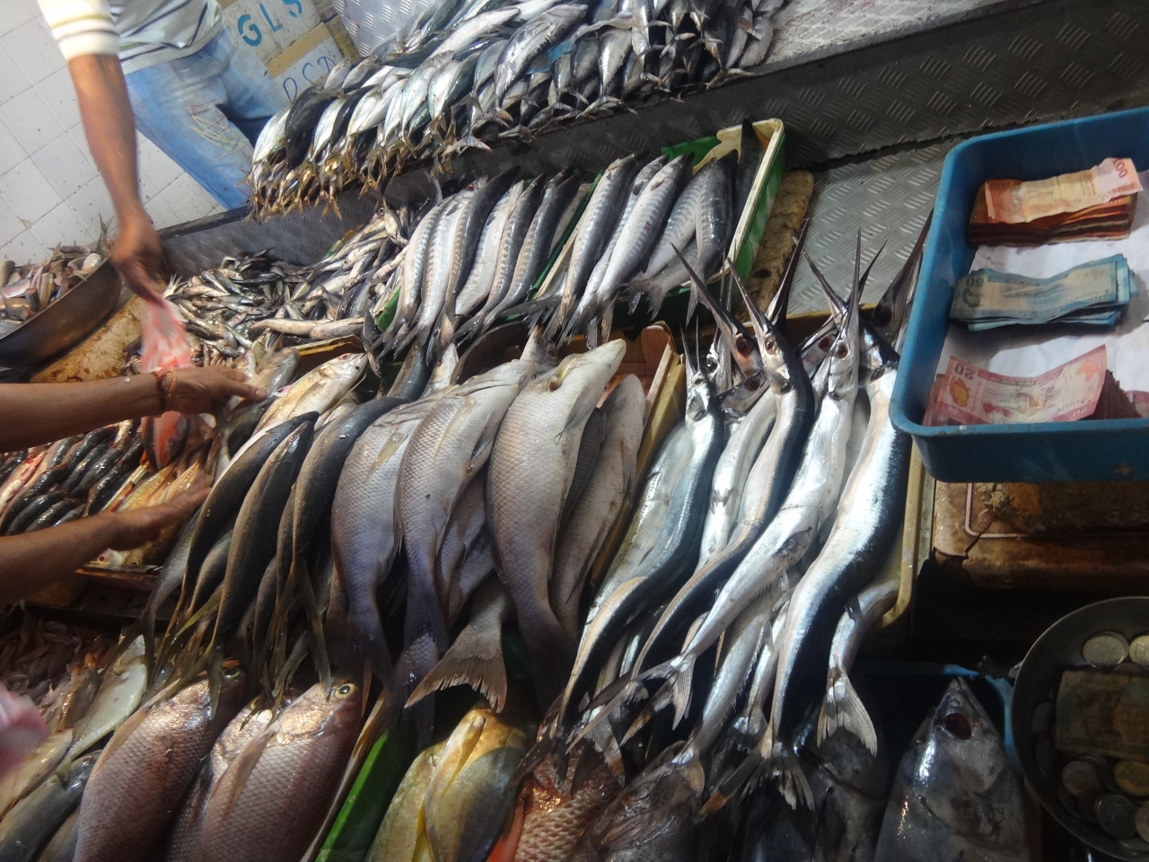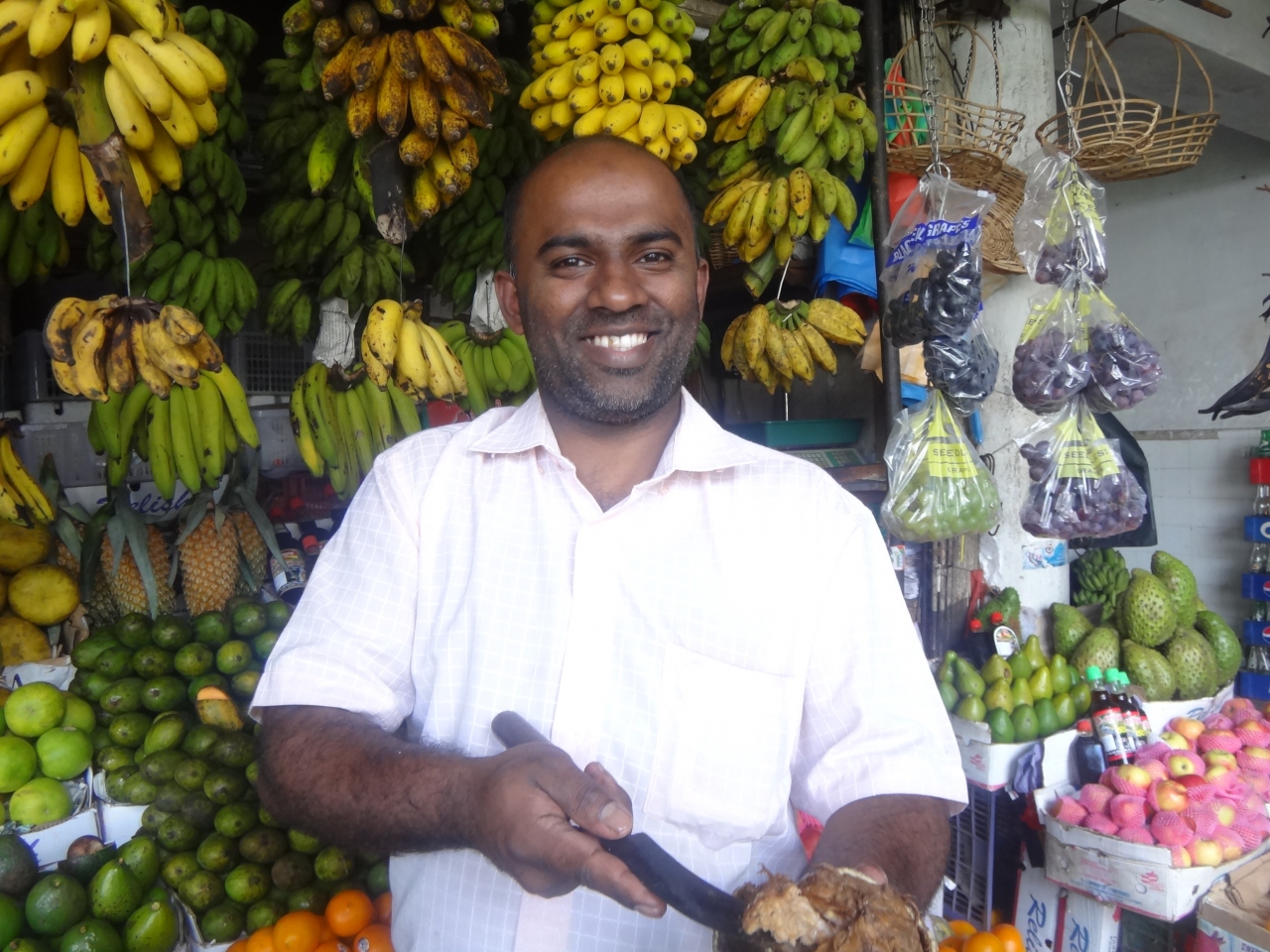 古都キャンディの中心地。有名な仏歯寺の観光を終えて、中心部に戻りぶらぶら歩いていくと、セントラルマーケットに到着する。観光客向けの施設と思っていたら、そういうわけでもなく地元の人も忙しく買い物に来ている。店先の珍しい果物や野菜は手にとって、時には味見をしながら、品定めできるので安心。旅行者用にほんの少量でも売ってくれる。