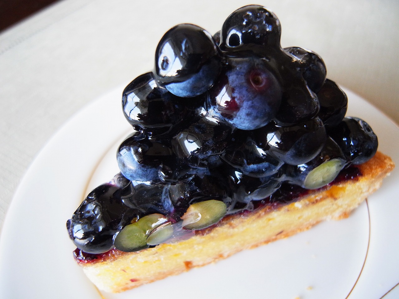フルーツタルトの中でも、特にブルーベリーは通年作られているご自慢のタルト。大きなブルーベリーがごろごろと山積みに。- 旅行時期