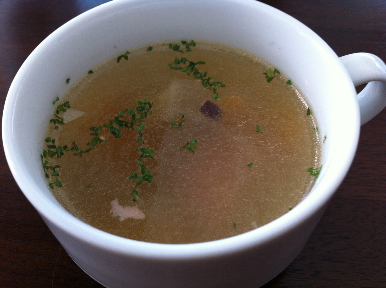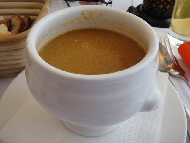 魚のスープ(Soupe de Poissons)は、どろどろとしたポタージュ風。とても濃厚。大きめのクルトンを浮かべて「のむ」というより「食べる」という感じ 。