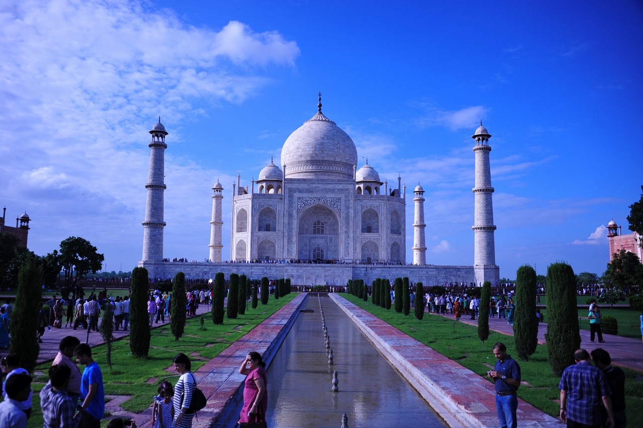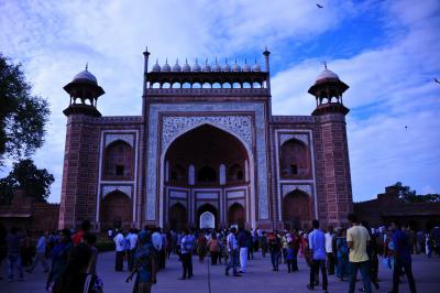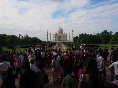 タージマハールは、王様が最愛のお妃様の死を悼んで建てたお墓。建物の中に棺があり、中に入って見学することができます。この日は、巨大なタージマハルを1周するほどの行列。