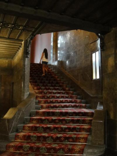 渡航前、ネットで旅行記を読むと、グエル邸は修復中で、地下の厩と屋上しか公開されていないとのこと、見学はすっかり諦めていた。
