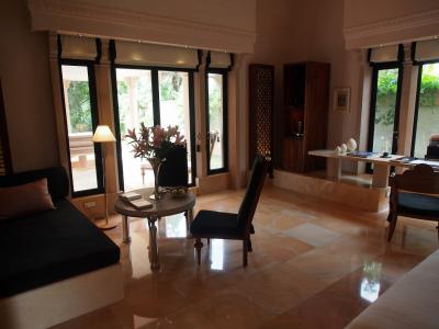 インド北部にはaman resortが3つもあり、デリーは近代的、アマニカスは乾期限定のテントスタイル。そして、このaman baghはリゾートスタイル。他のamanには1泊とか2泊なのだけれど、ここは往復に時間がかかるので、思い切って3泊。シャンティプログラムを選ぶ。(朝食と、日々のアクティビティがパッケージされている)