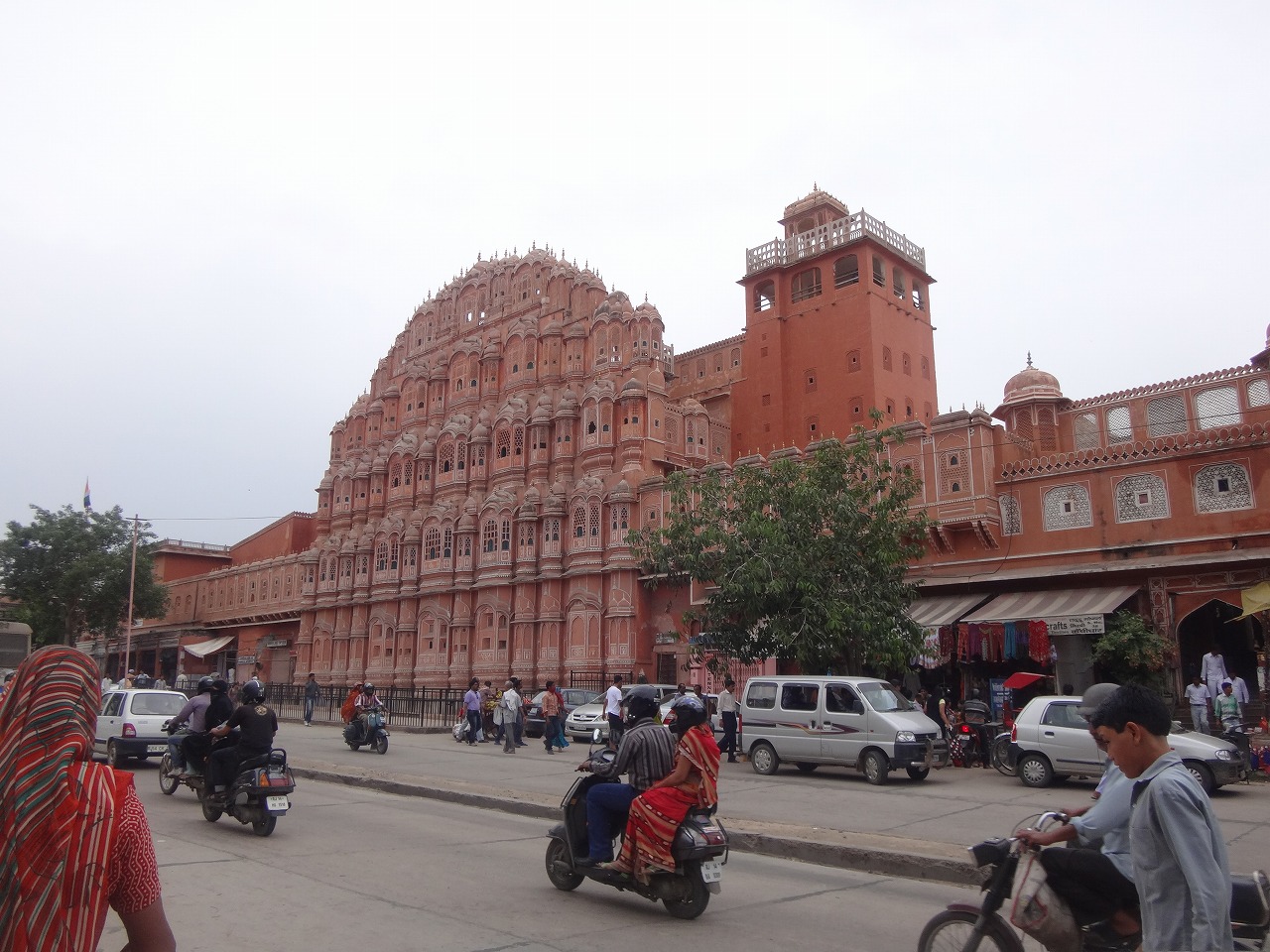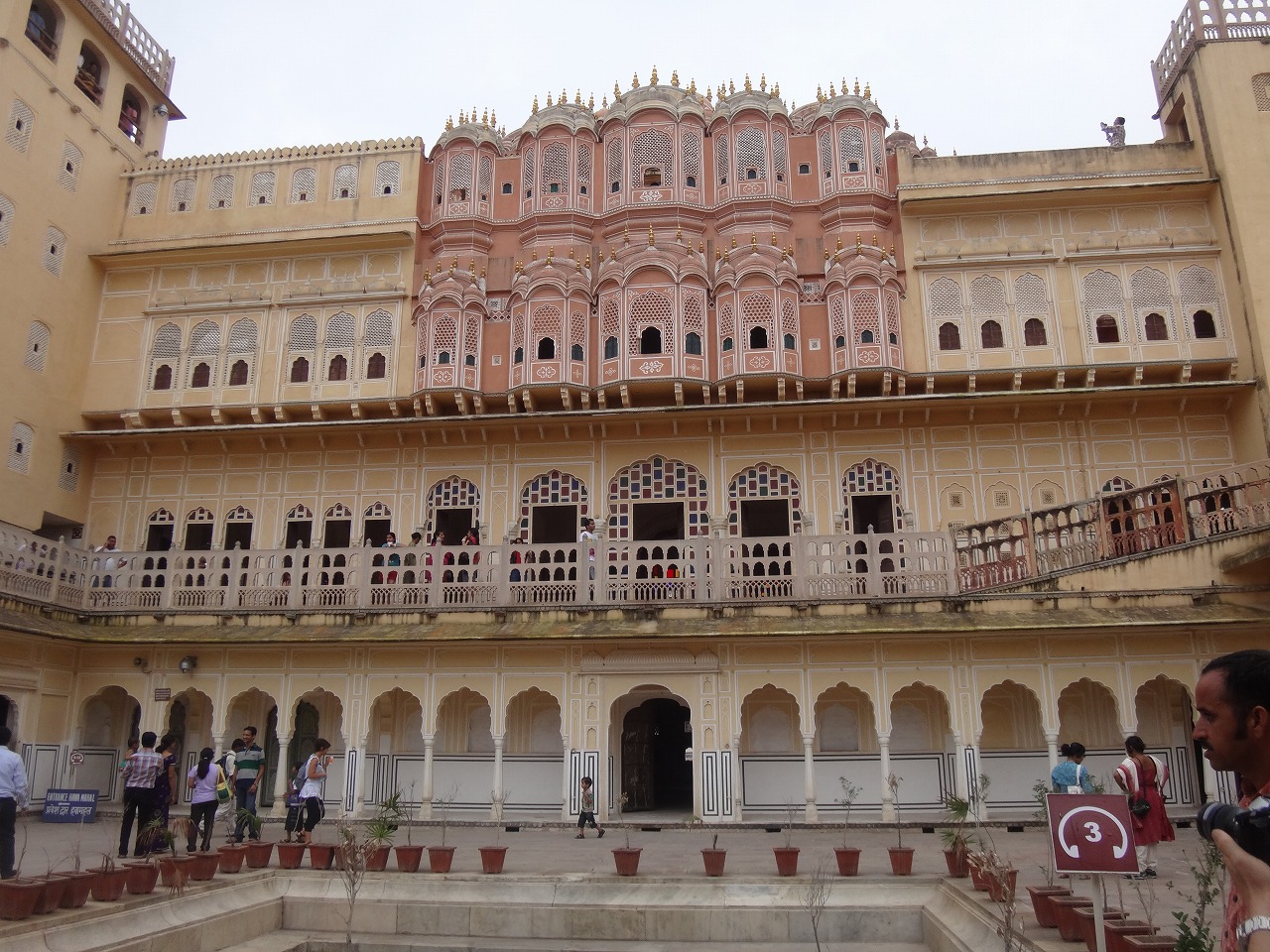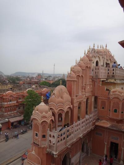 シティパレスと回廊で繋がる風の宮殿。宮殿といっても居室があるわけではなく、窓がたくさんついたテラス。外から見ると薄い壁のように見える。