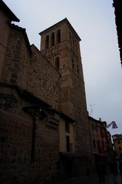 ムデハル様式の鐘楼が目印。ムデハル様式とは、レコンキスタの後、イベリア半島からイスラム勢力が一掃されたのだけれど、中には残留を許されたイスラム教徒もいて、彼らによるイスラム様式と、キリスト教の様式が融合したものだそうだ。建物壁面に幾何学模様が施されている。