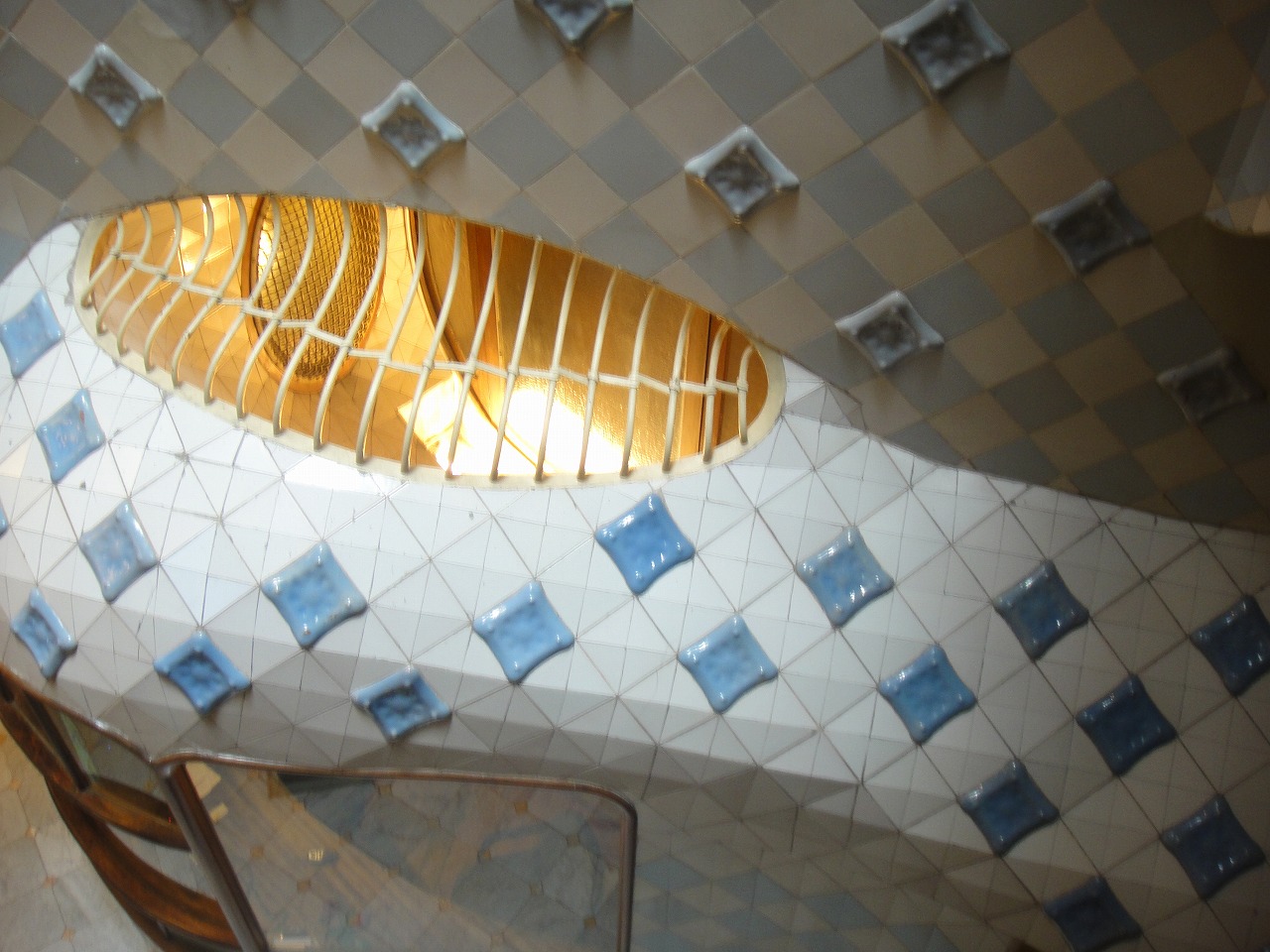 建物は、モデルニスモの花や草木をモチーフにしたかわいらしい感じではなく、幾何学模様が主体の、オリエンタルな雰囲気。