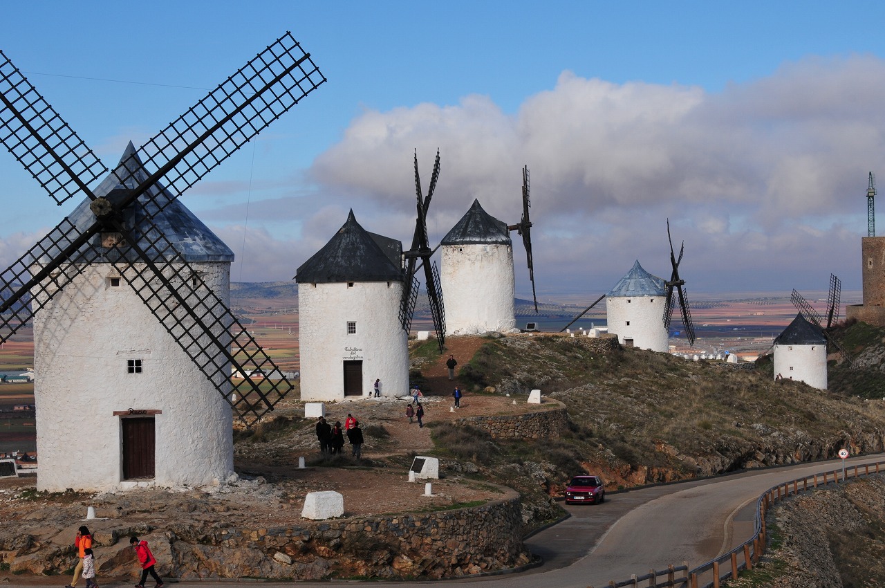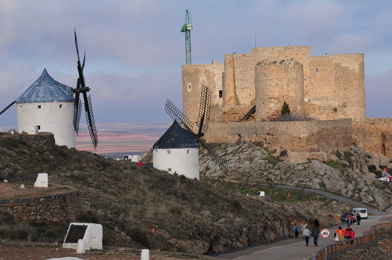 この光景は、Consuegra(コンスエグラ)とCampo de Criptana(カンポ・デ・クリプターナ)の2箇所で見れる。
