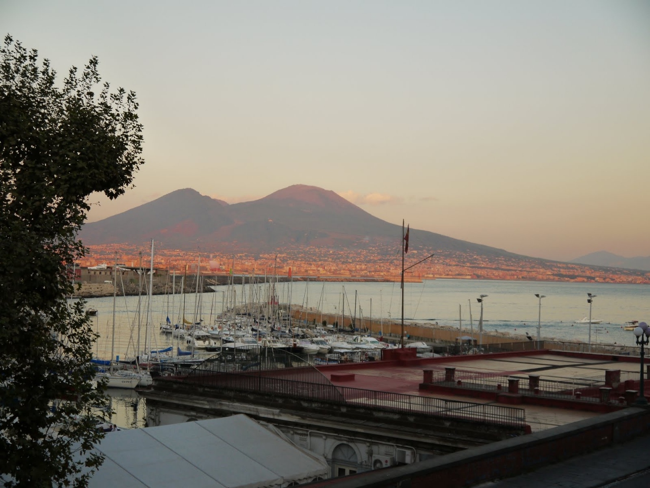 手前に大きく湾曲したナポリ湾。賑やかな港を、All in Oneで眺めることができます。