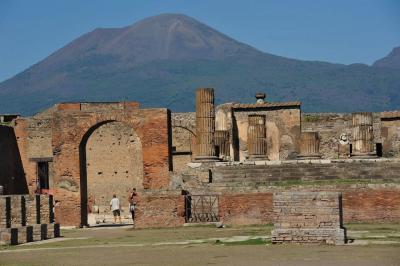 遺跡の背後に、ベスビオ火山が大きく見えるところが、なんともいえない。