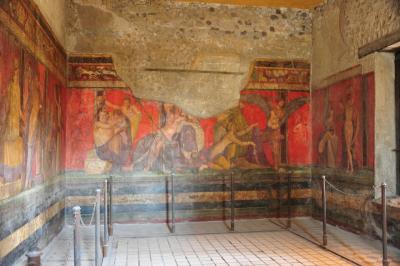 秘儀荘は、壁画の独特の赤が必見です。